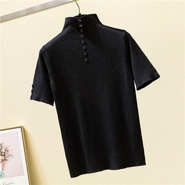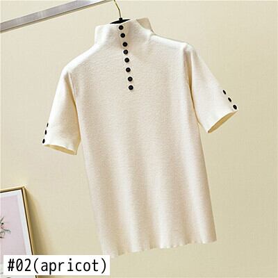 2022 夏ニットボタンセーター女性タートルネック半袖スリムソリッドレディースセータープルオーバートップス ショート ハーフスリーブ サマー 夏物 ソリッドカラー Son31496904756