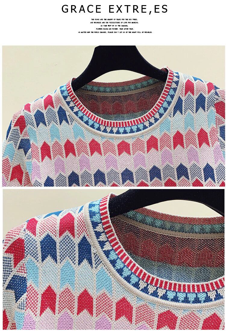 LJSXLS O ネック半袖ニットセーターの女性の夏秋の婦人服プルオーバートップス Sueters デ ショート ハーフスリーブ サマー 夏物 オータム 秋物 Oネック Son90129530431