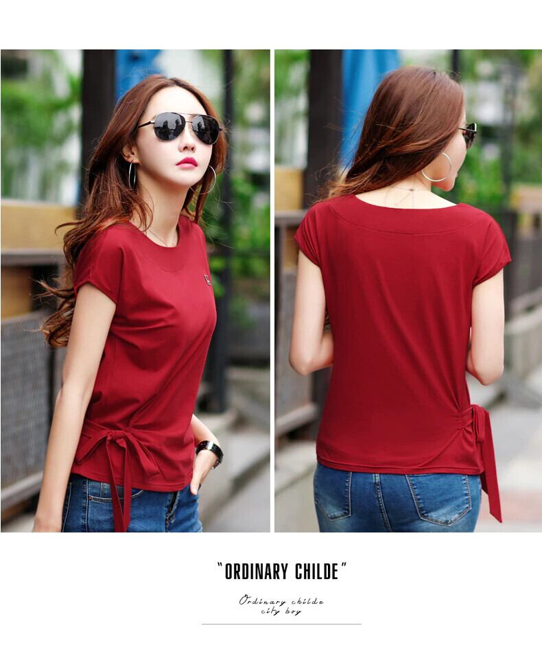Ropa Moda 2022 夏綿白 Tシャツ弓トップス Tシャツ女性 Tシャツバットウィングスリーブ ホワイト リボン コットン サマー 夏物 Son54490154891