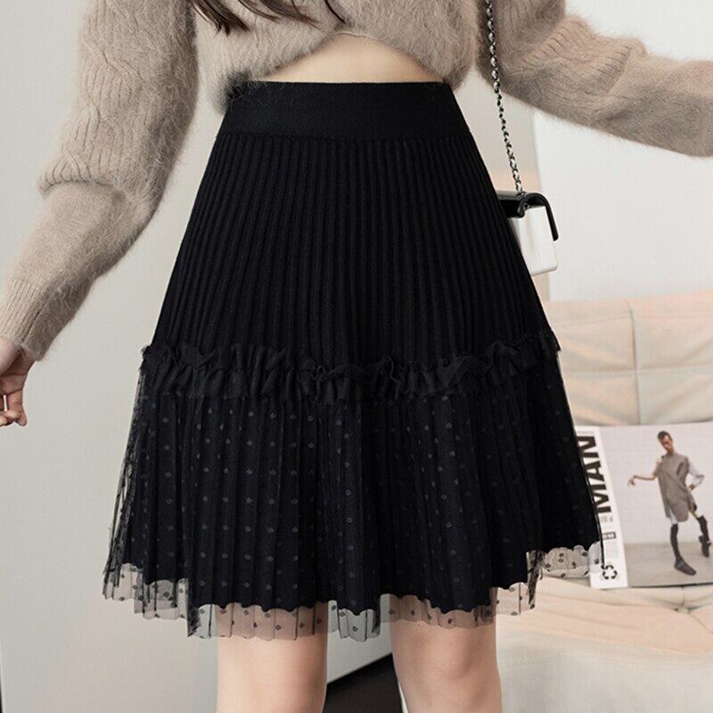 LJSXLS 女性ショートチュールプリーツスカート春夏弾性ウエストスカートレディース 2021 無地 A ラインスカート服 エラスティック 伸縮 スプリング 春物 サマー 夏物 Aライン ソリッドカラー Son36416308276