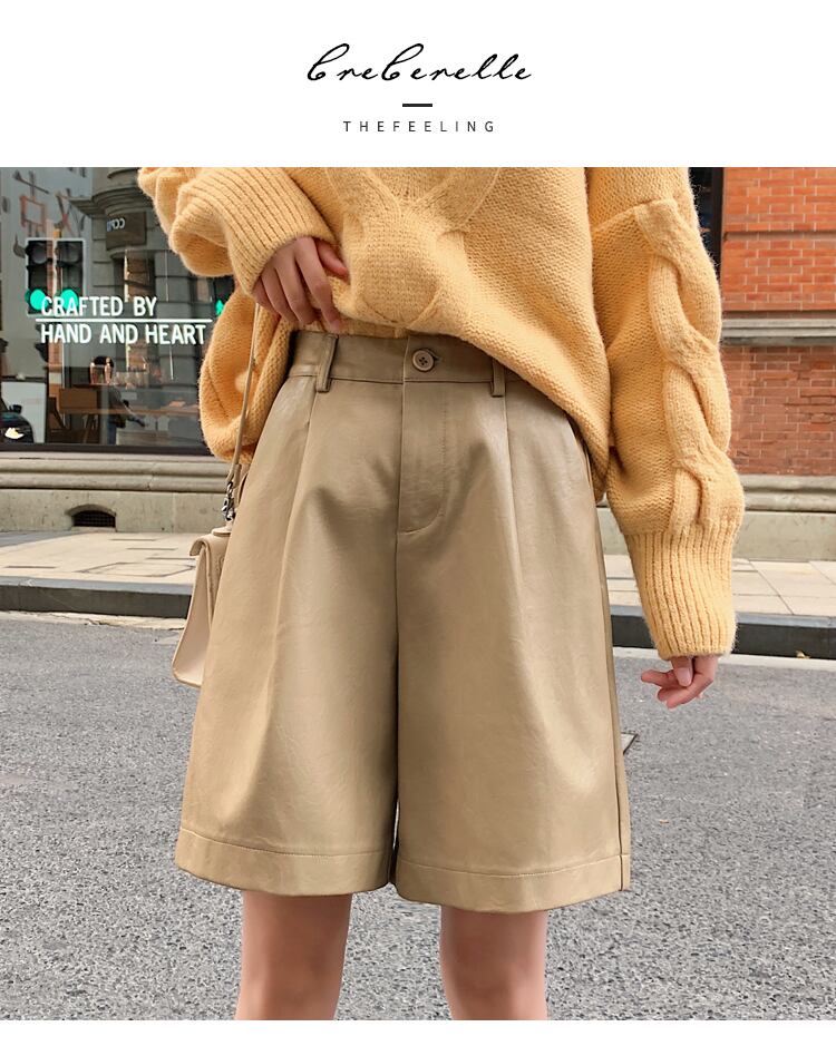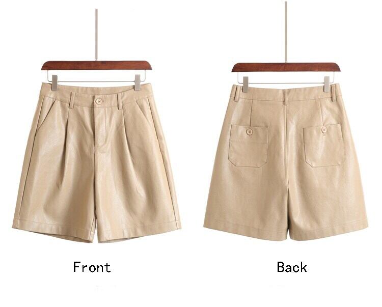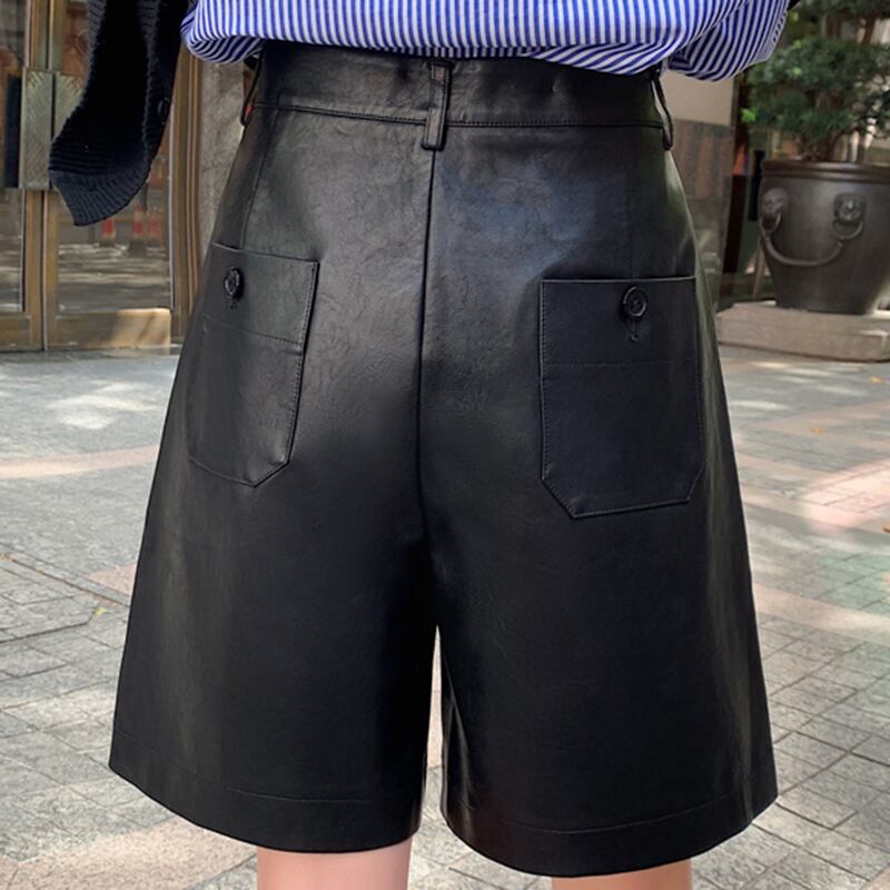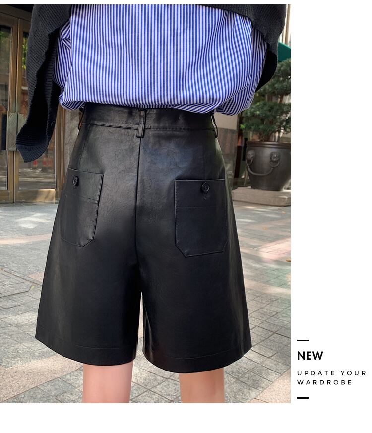 LJSXLS ショート S-3XL ボタン黒 PU レザーショーツ女性 2022 秋冬ルーズ 5 点レザーショーツ ブラック オータム 秋物 ウィンター 冬物 ブルマー Son23017495297