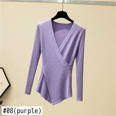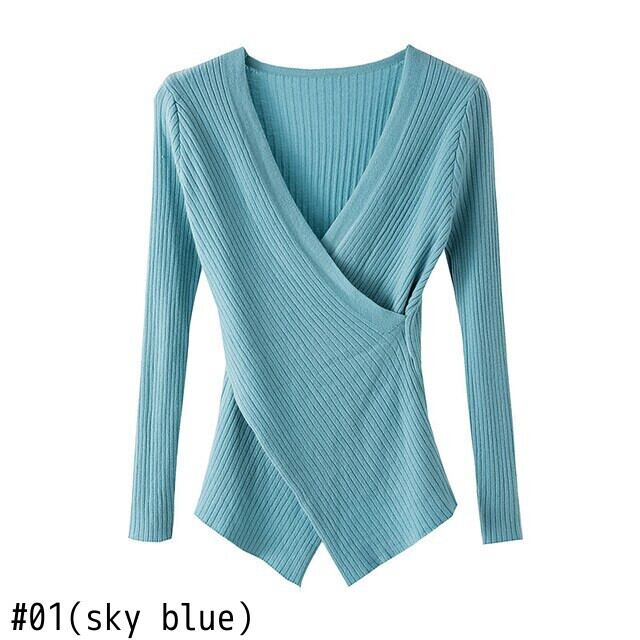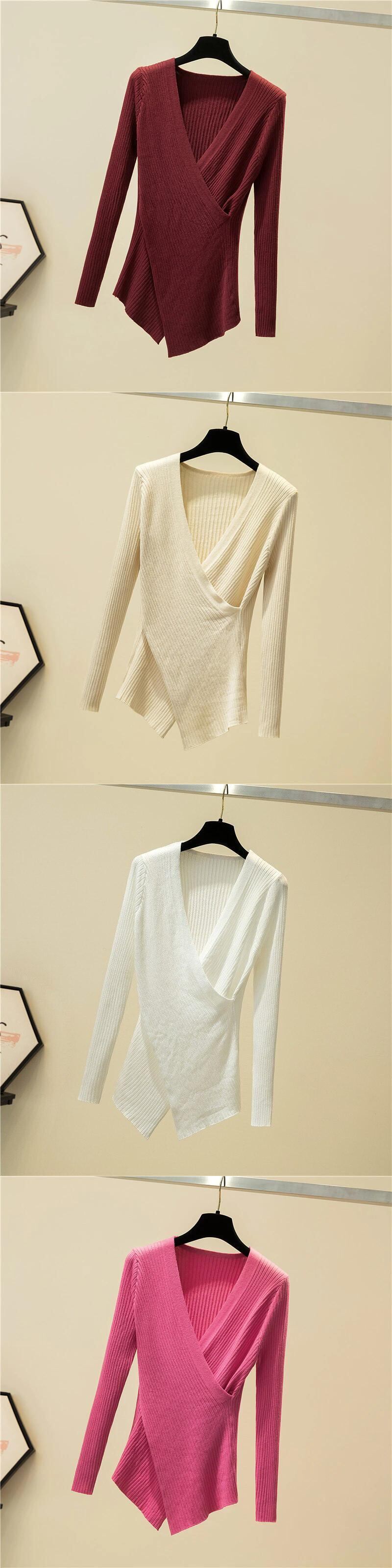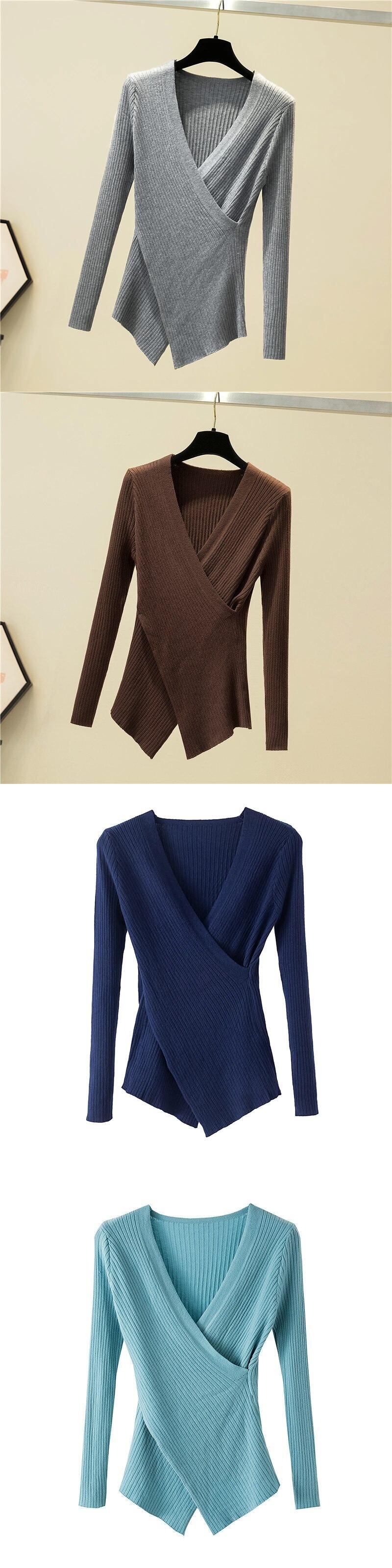不規則なセクシーな V ネック長袖プルオーバーニットセーター女性 2022 冬セーターニット女性服秋 ロング ウィンター 冬物 Vネック Son49093337099