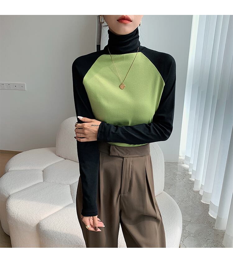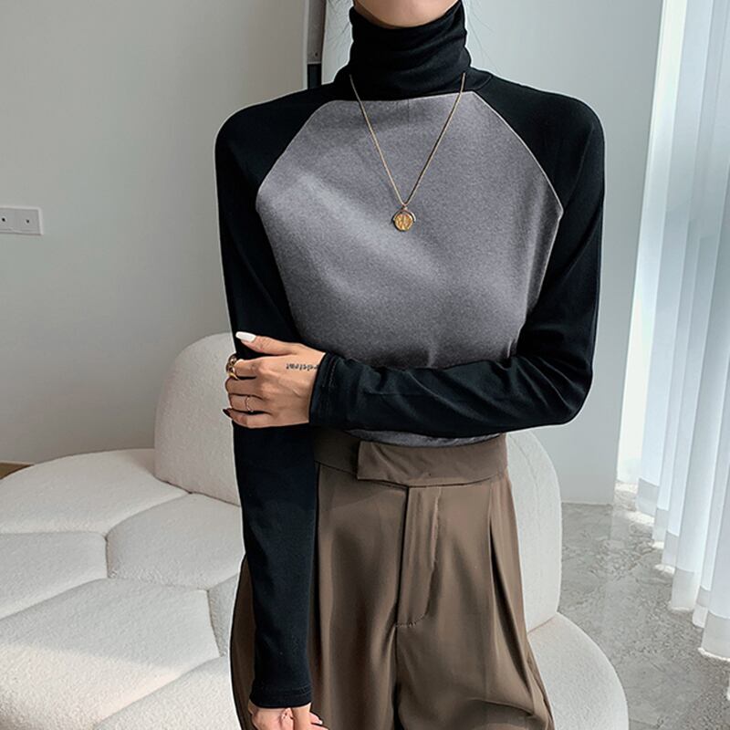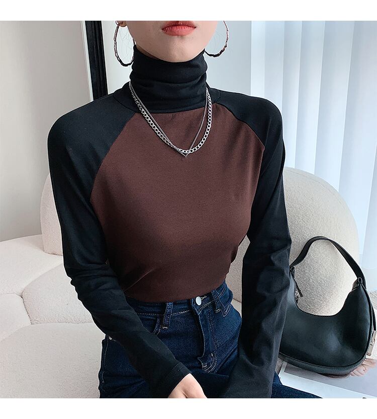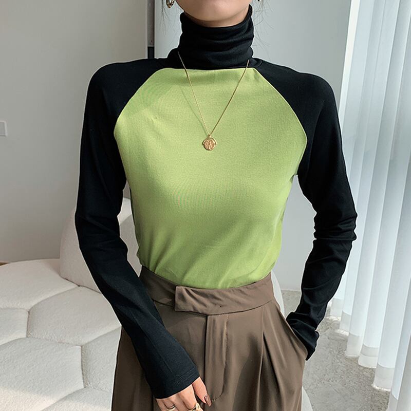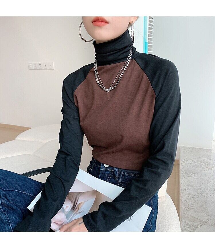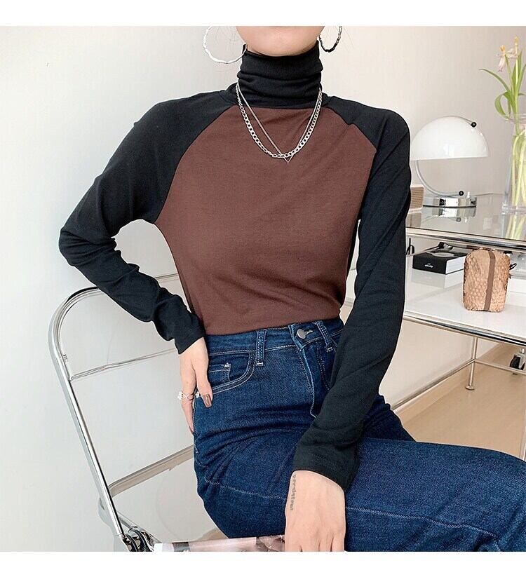 綿長袖 Tシャツコントラストカラートップタートルネック Tシャツ女性 2022 Sprin 女性服 Tシャツスリムベーシック Poleras ロング コットン Son22988548023