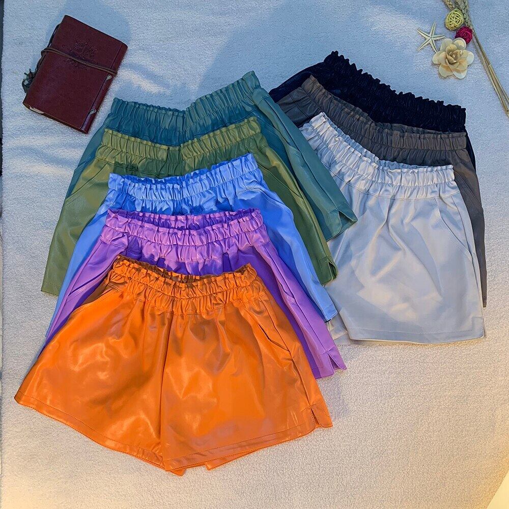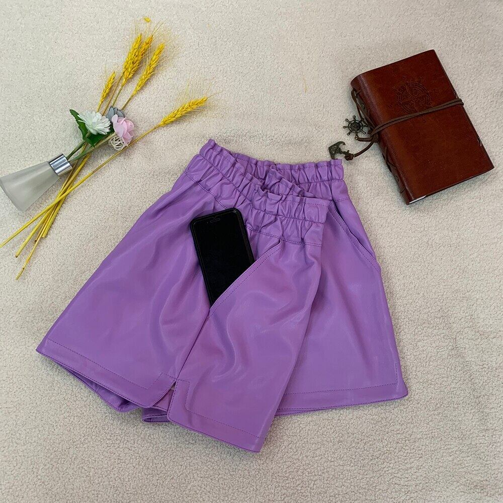 LJSXLS 弾性ウエストワイドレッグポケットショーツ女性秋冬 PU レザーショーツ 2021 エラスティック 伸縮 オータム 秋物 ウィンター 冬物 ブルマー ワイドパンツ Son61268127473