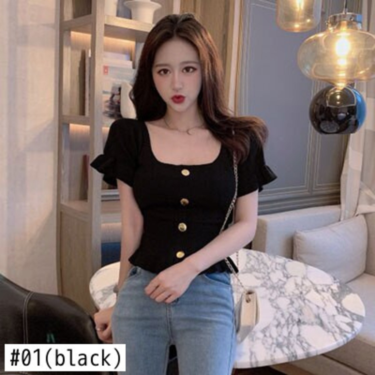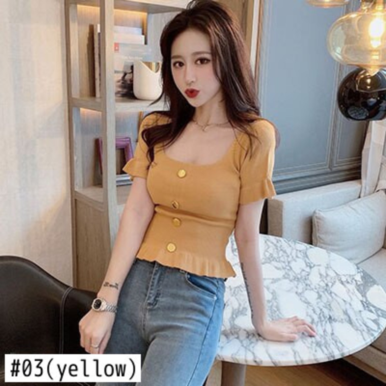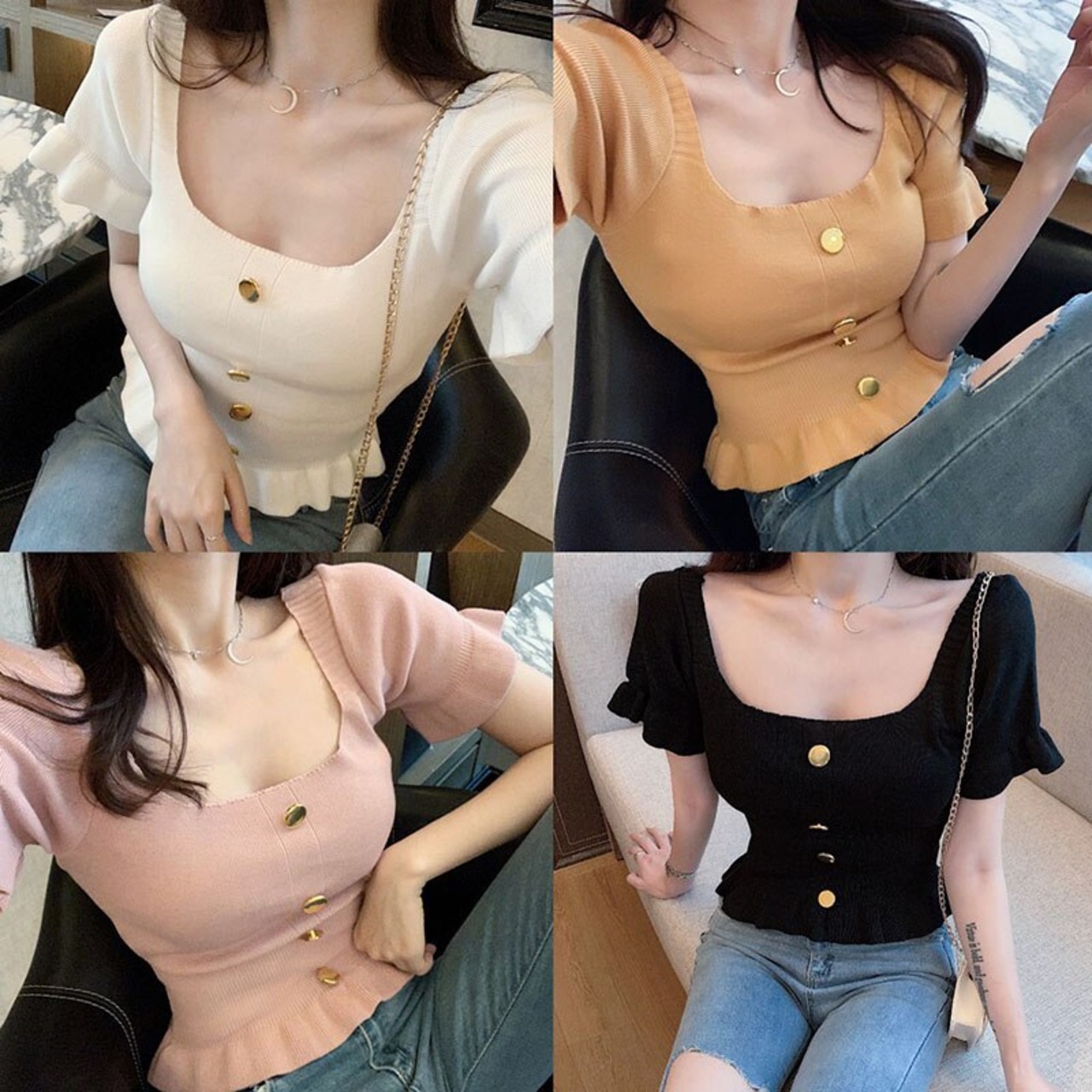 Shintimes 2022 夏半袖女性セーターニットクロップトップススリムセクシーなボタンプルオーバー Chompas パラ ショート ハーフスリーブ サマー 夏物 Son31786985567