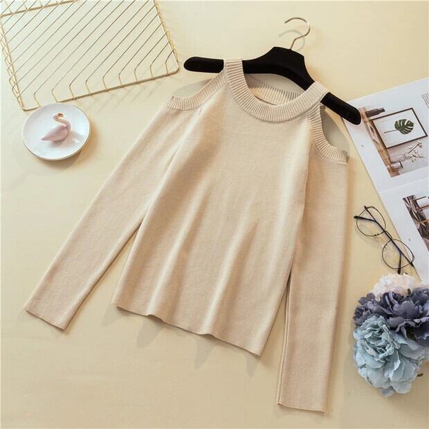 LJSXLS セクシーなオフショルダーニットセーター女性ソリッドスリムプルオーバーセーター白黒ジャンパー 2022 秋冬トップス ホワイト ブラック オータム 秋物 ウィンター 冬物 ソリッドカラー Son46994504426