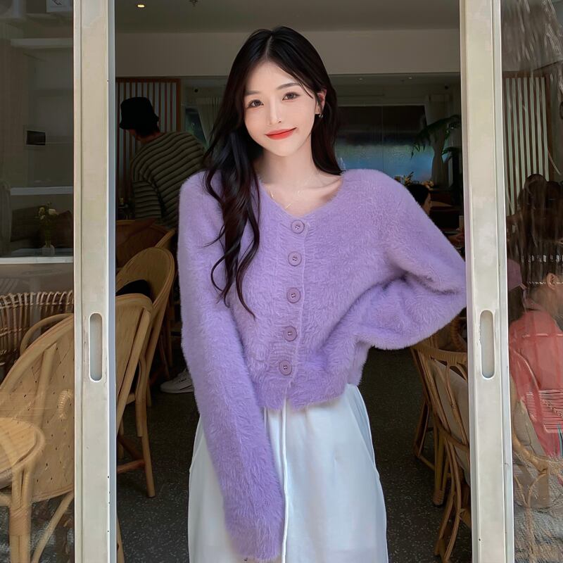 O ネックニットカーディガン女性長袖ピンクのセーターボタン Croppe トップス 2022 秋冬の女性の服 ロング オータム 秋物 ウィンター 冬物 Oネック Son45072336037