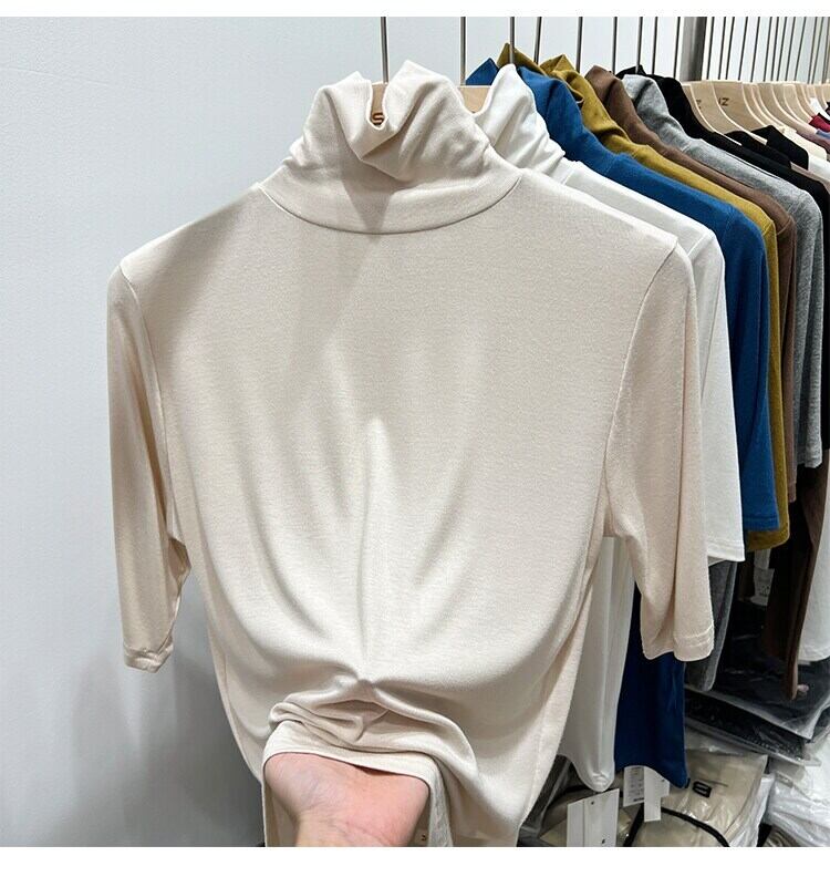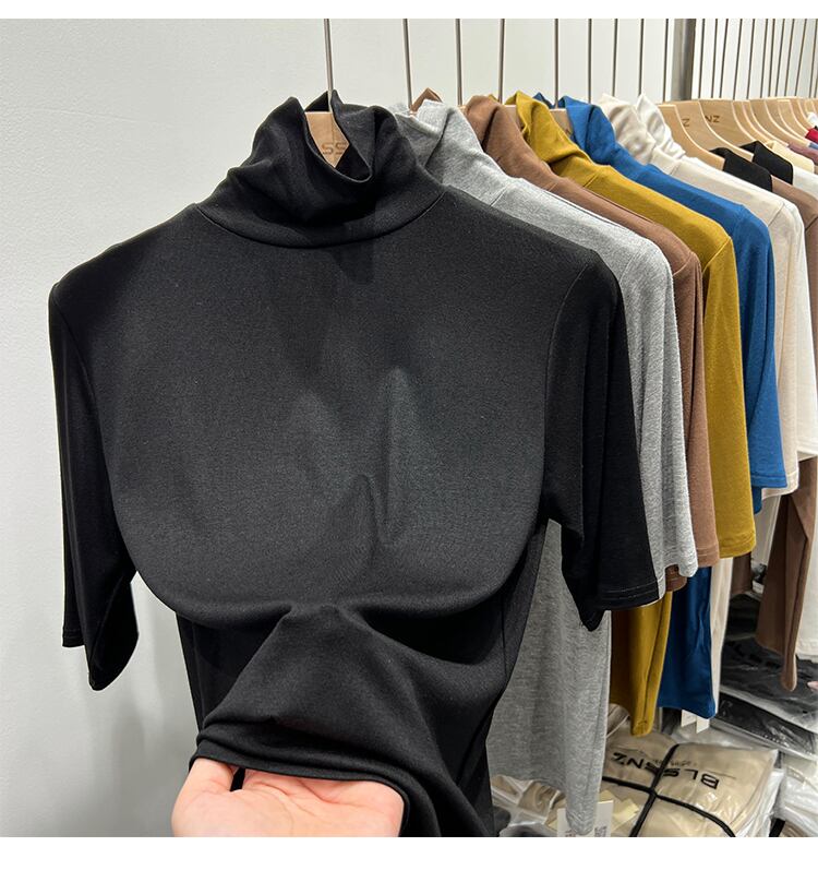スタイル綿 Tシャツ女性 2023 春夏半袖白トップス基本 Tシャツ女性服タートルネック Tシャツ ショート ホワイト コットン ハーフスリーブ スプリング 春物 サマー 夏物 Son16922933576