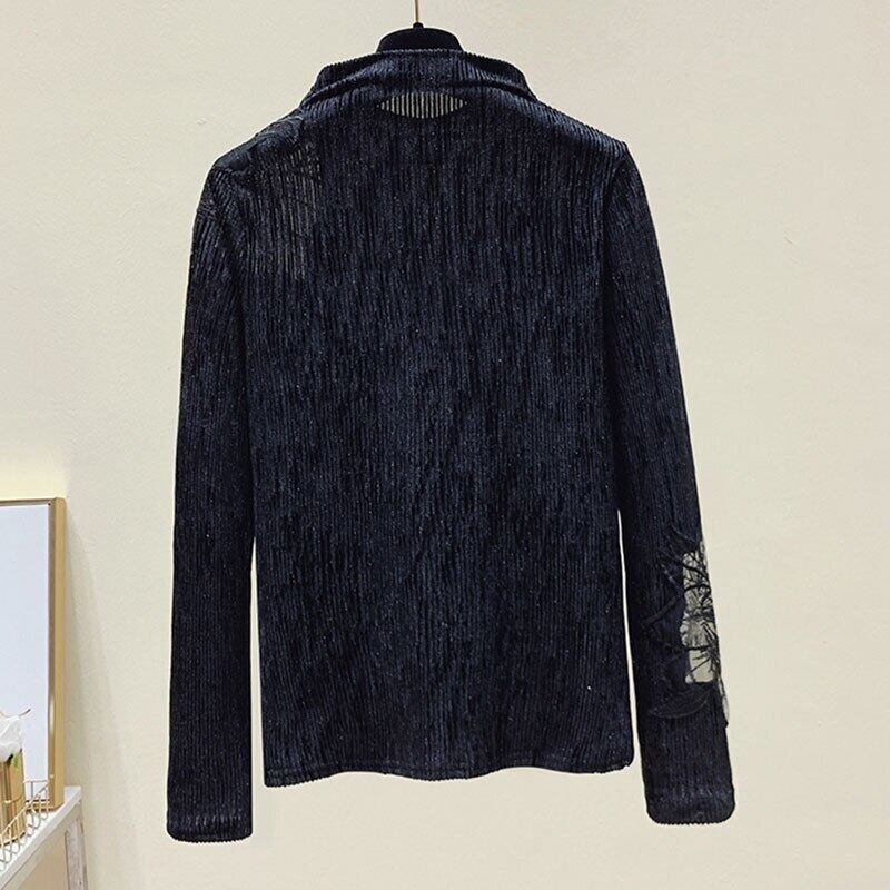春秋中空アウト長袖 Tシャツ女性固体ハーフカラーの女性の Tシャツ創造性オールマッチ Tシャツ ロング スプリング 春物 オータム 秋物 ソリッドカラー Son30290219660