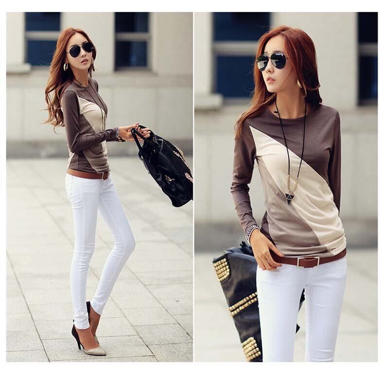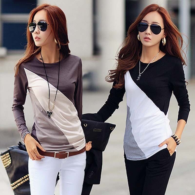 Tシャツ 2022 長袖 Tシャツの綿の女性 T シテ春秋レディーストップスコントラスト色の女性服 Poleras ロング コットン スプリング 春物 オータム 秋物 Son87970082356