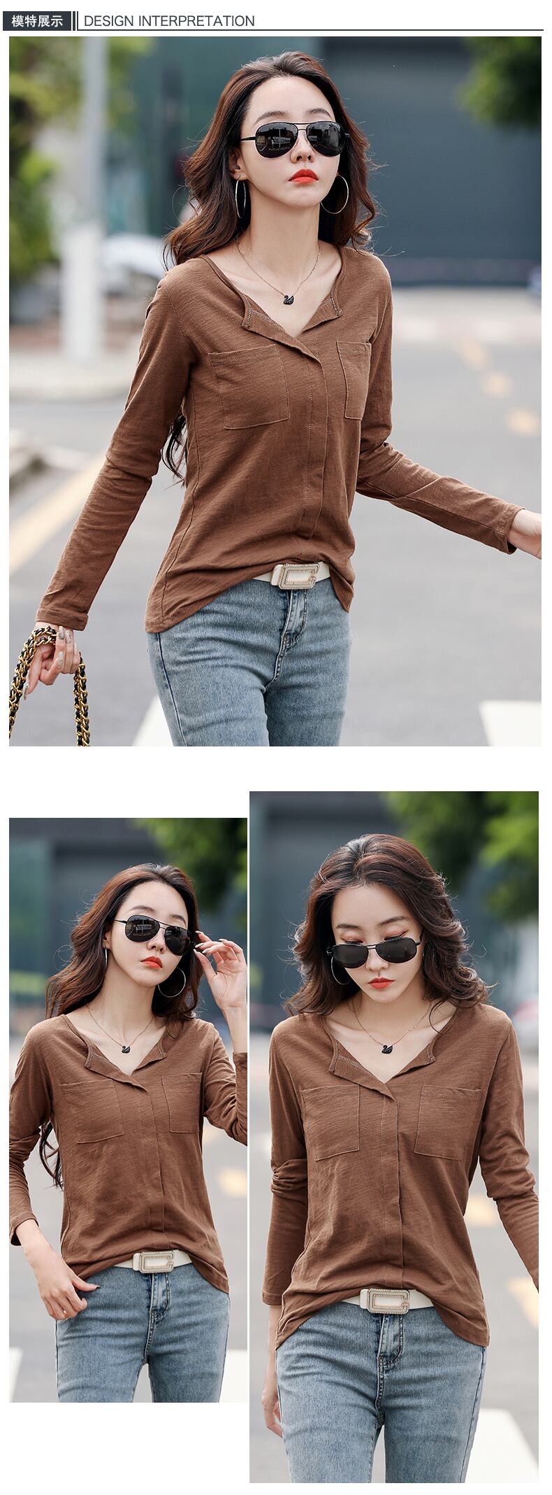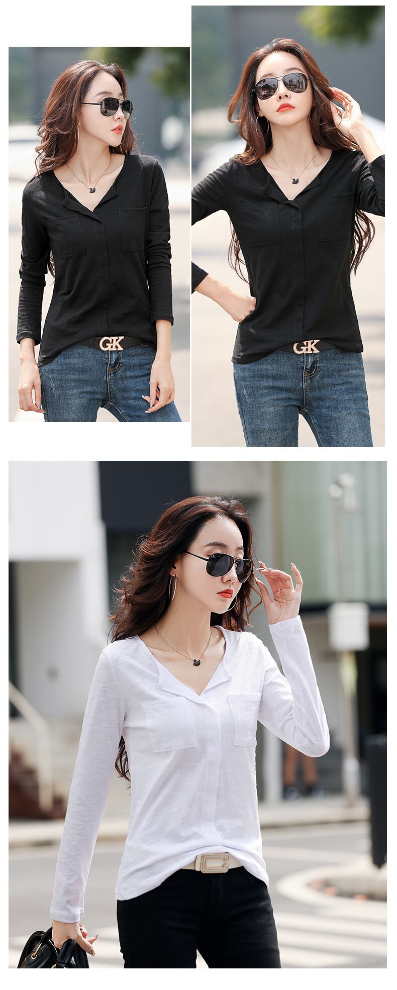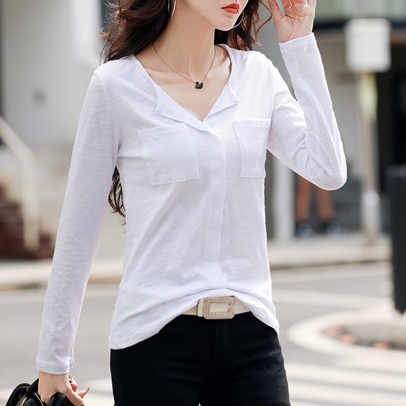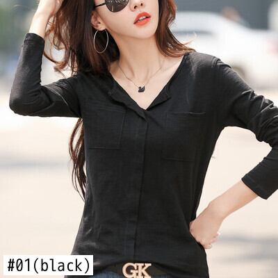 コットン Tシャツの女性の春秋の長袖 Tシャツ V ネック Tシャツトップス Tシャツ 202 ロング スプリング 春物 オータム 秋物 Vネック Son43263129303