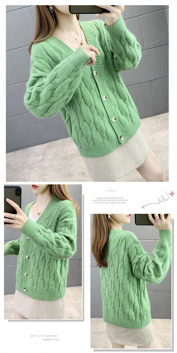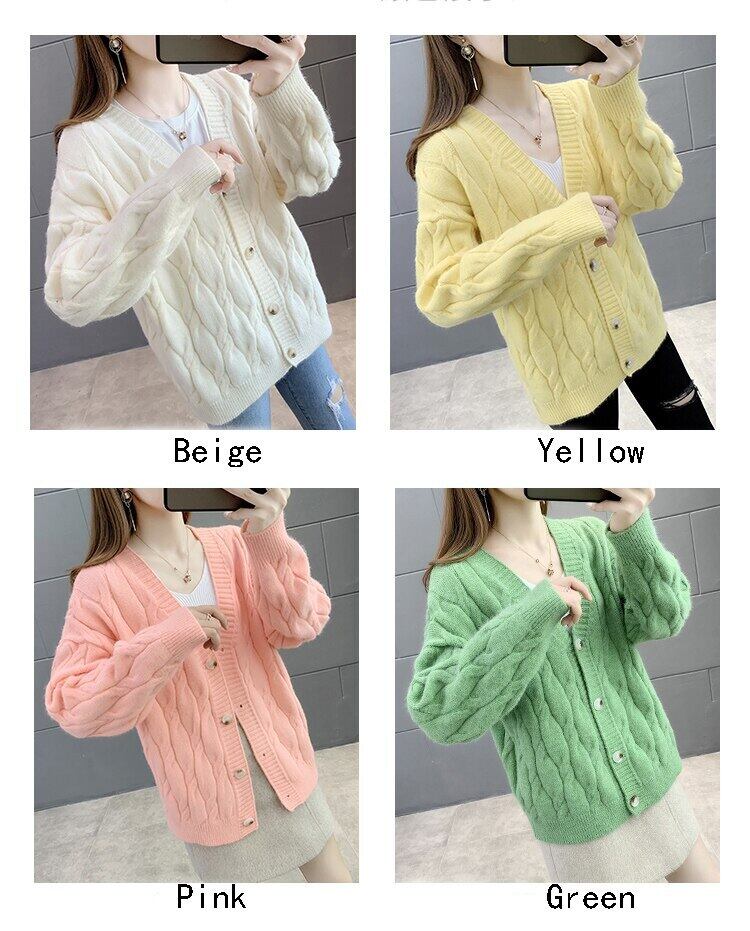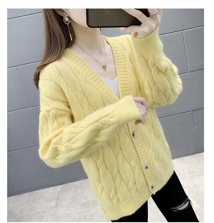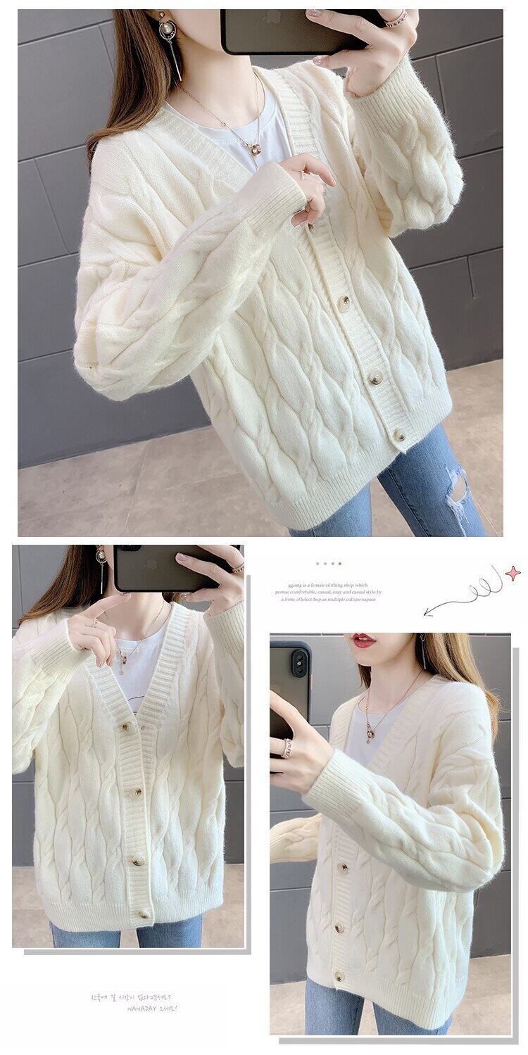 LJSXLS V ネックニットカーディガンセーター女性ボタンコート長袖ニット秋冬ルーズ生き抜くトップス ロング オータム 秋物 ウィンター 冬物 Vネック Son22766572504