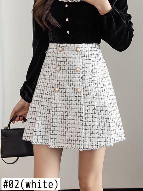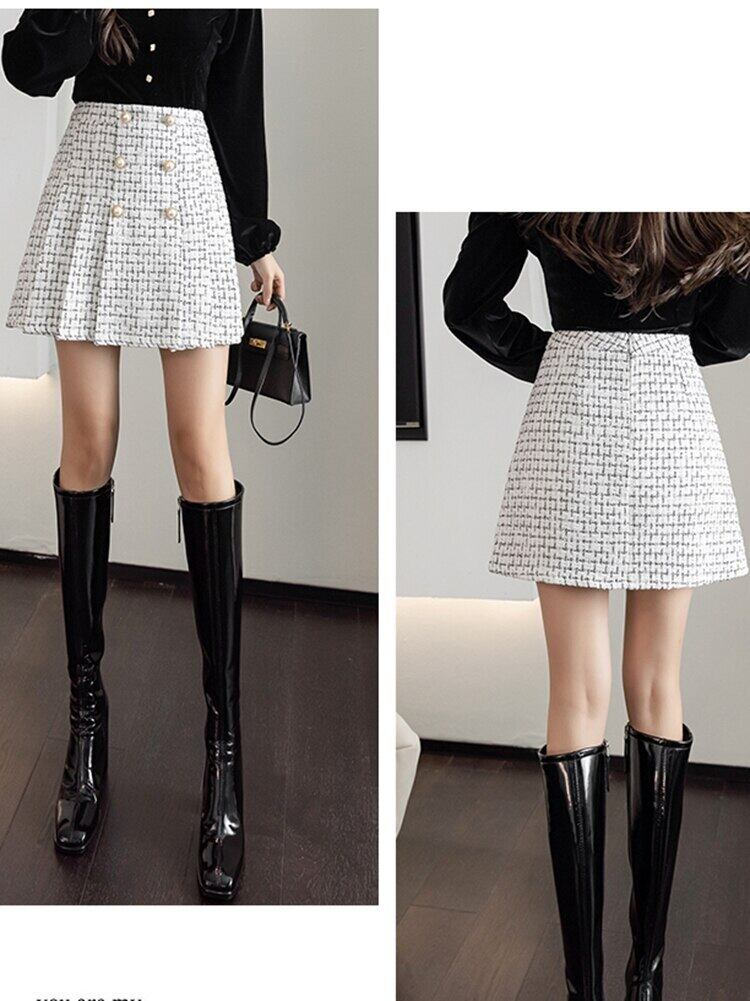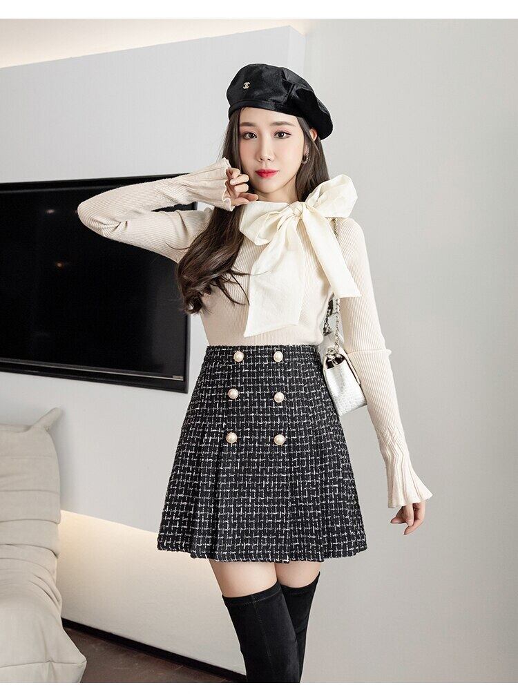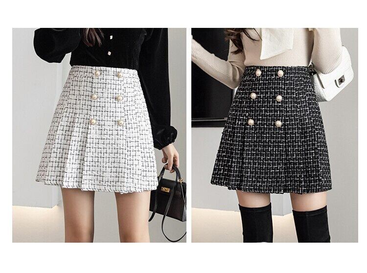 ファルダス モーダ 2022 秋冬ウエスト黒プリーツ スカート女性ボタン スリム ミニ スカート ブラック オータム 秋物 ウィンター 冬物 Son12057320175
