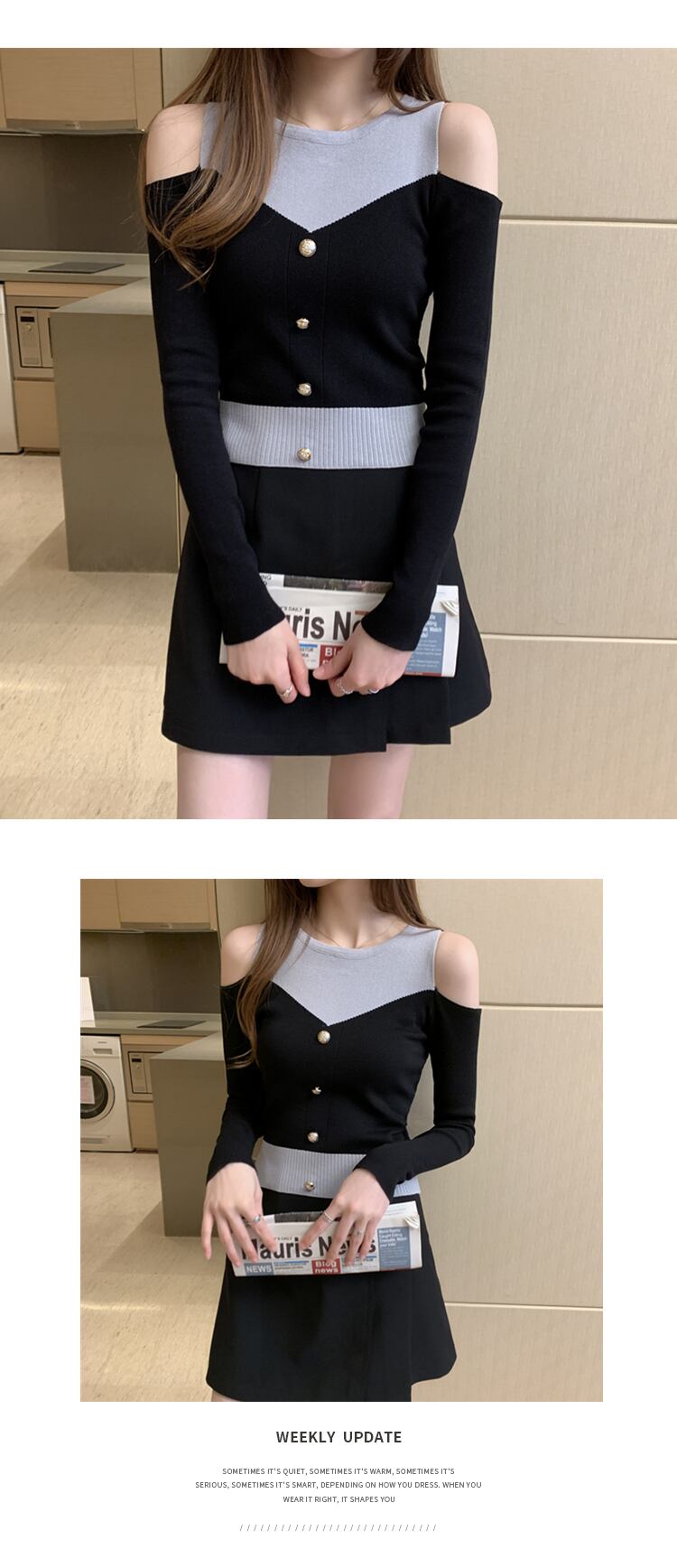 LJSXLS フェイク 2 パッチワークニットセーター女性秋スリムセクシーなオフショルダーセータークロップドプルオーバー 2022 冬の女性ジャンパー オータム 秋物 ウィンター 冬物 Son87645188419