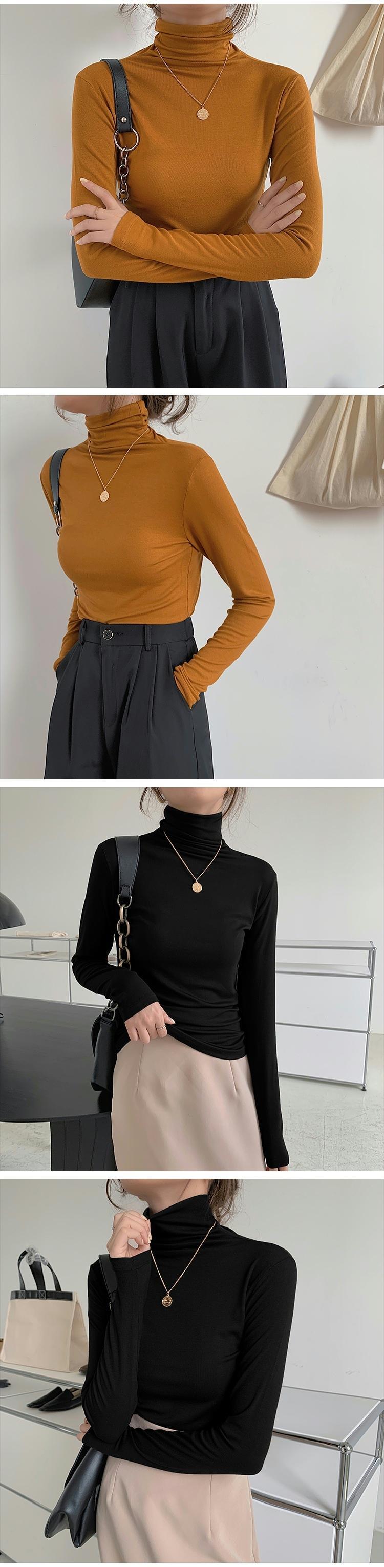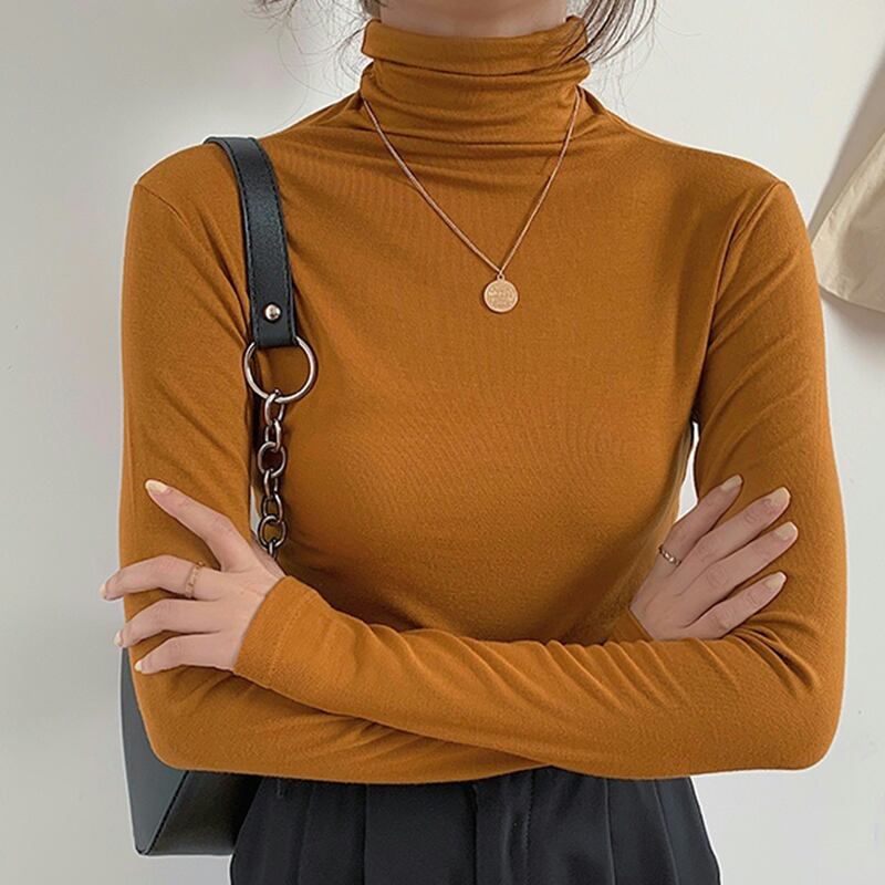 LJSXLS 基本的なタートルネック長袖 Tシャツ女性 2021 秋全試合スリムトップス Tシャツ服 ロング オータム 秋物 Son83018084573