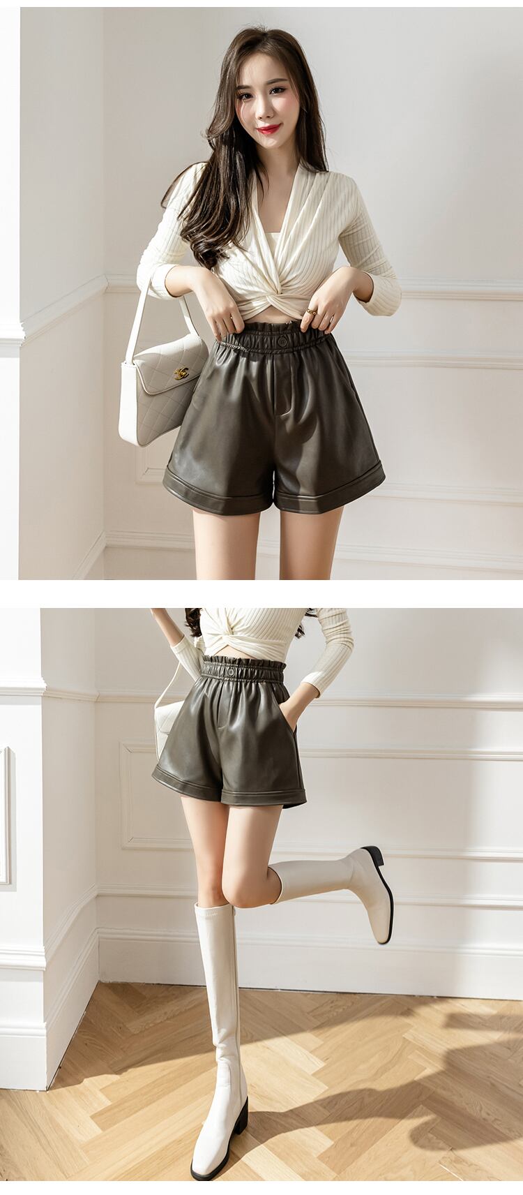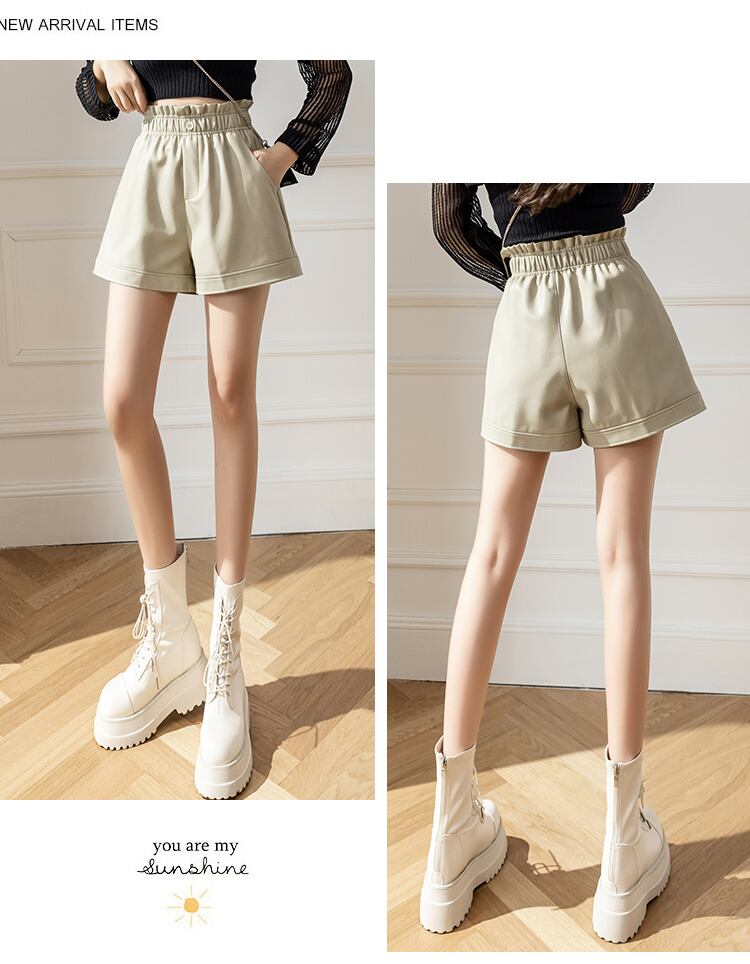 2022 弾性ウエストショーツ女性ボタン PU レザーショートブラックポケット秋冬 Vetement エラスティック 伸縮 オータム 秋物 ウィンター 冬物 ブルマー Son78718646605