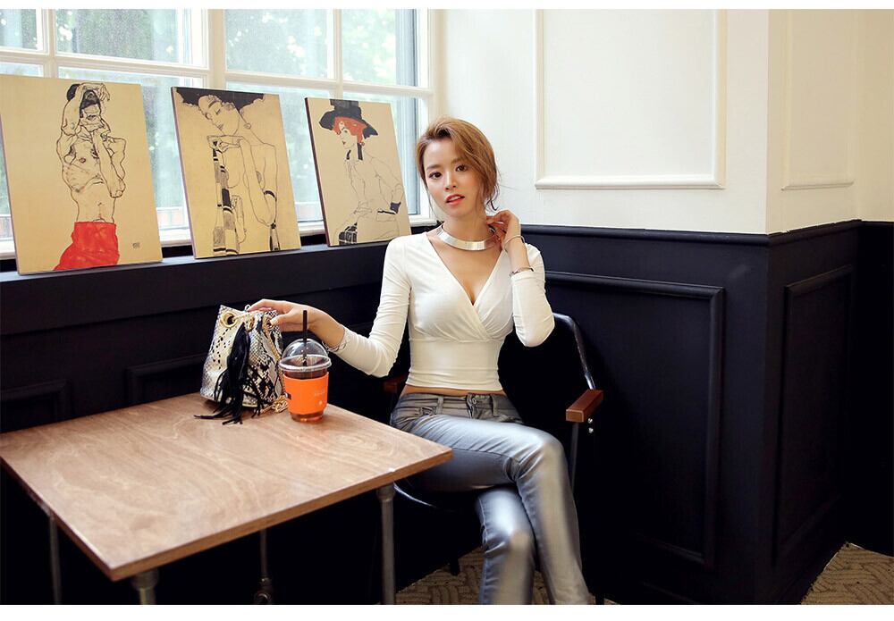 セクシーなディープ V ネックトップ Tシャツ女性 2022 レディース長袖クロップトップス Tシャツ Tシャツショート Tシャツ Camisetas ロング Vネック Son2648560028