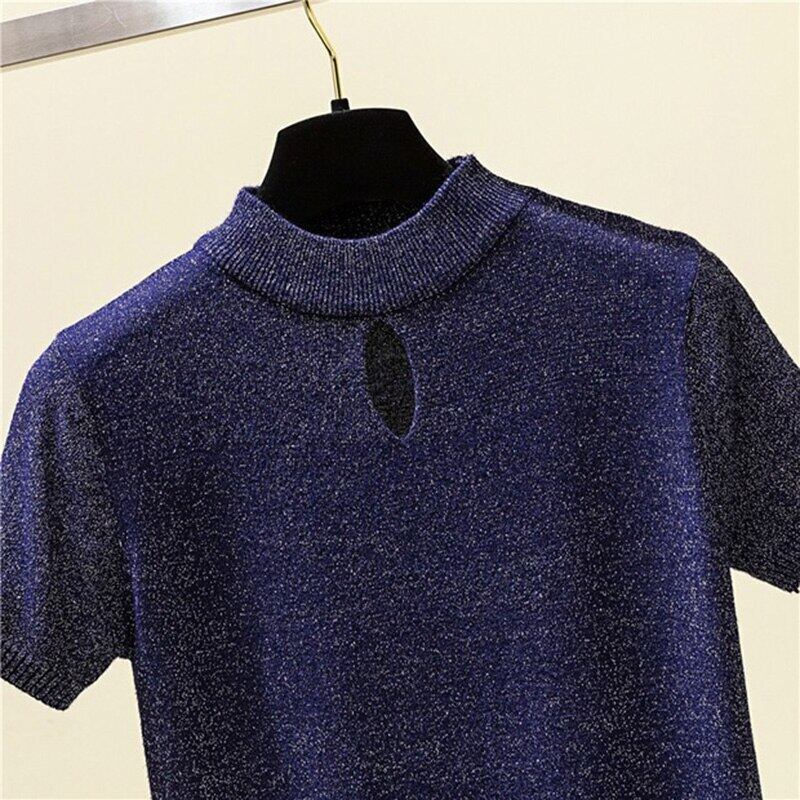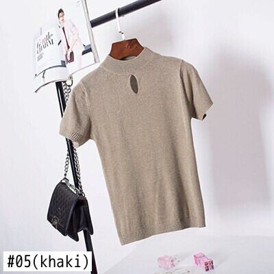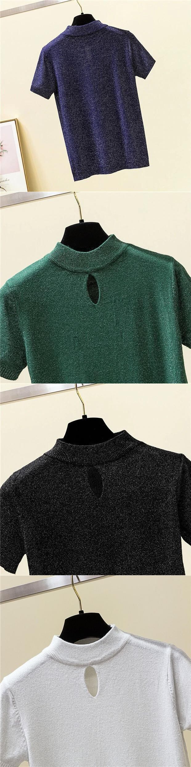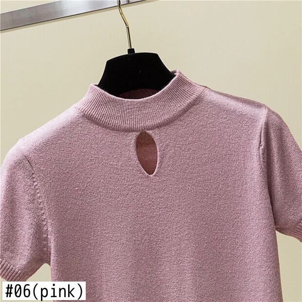 Shintimes 2022 夏原宿 Tシャツ女性ニット中空アウトセクシーなトップス半袖タートルネック Tシャツ白黒 ショート ホワイト ブラック ハーフスリーブ かわいい サマー 夏物 Son57968226424