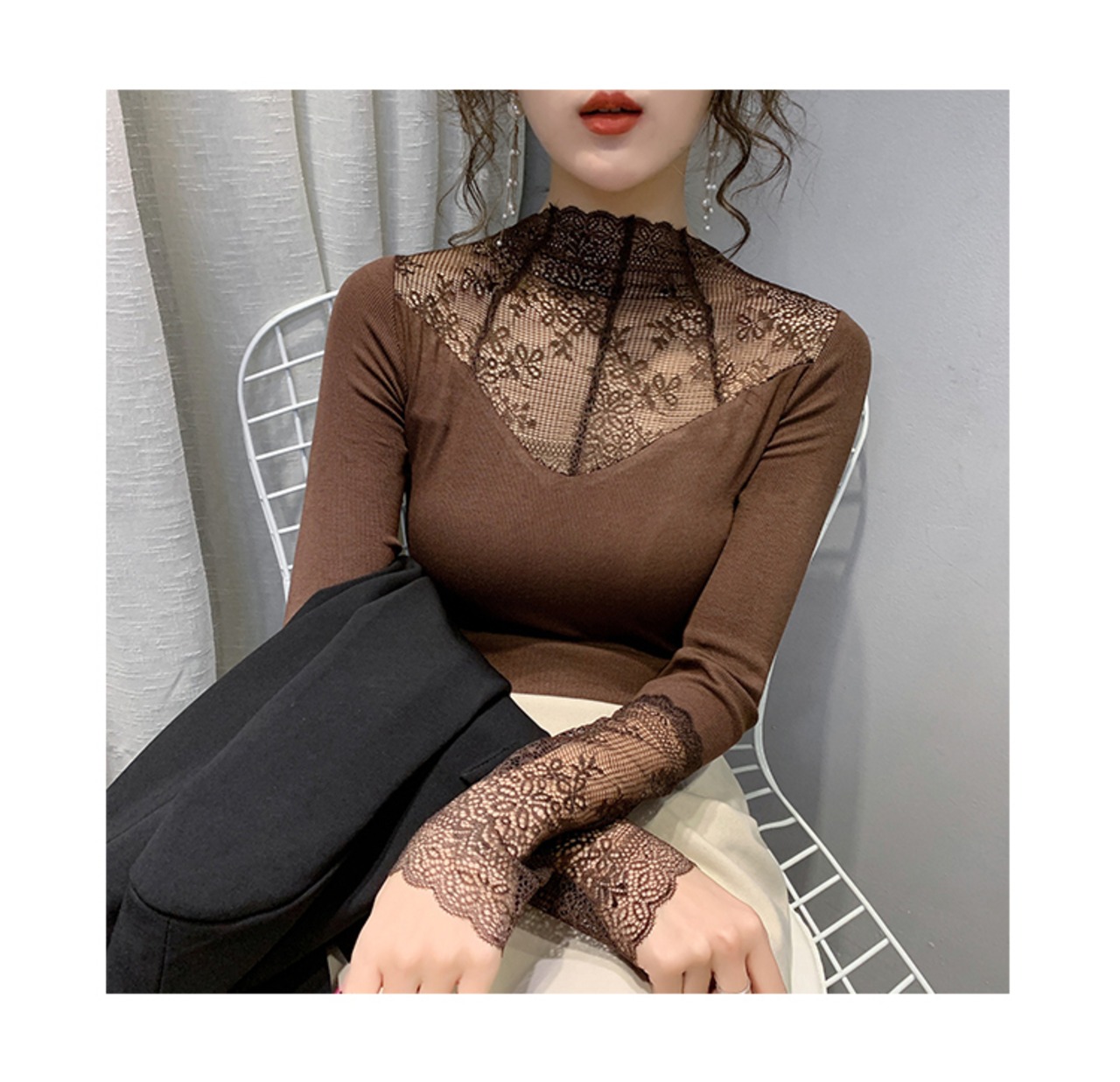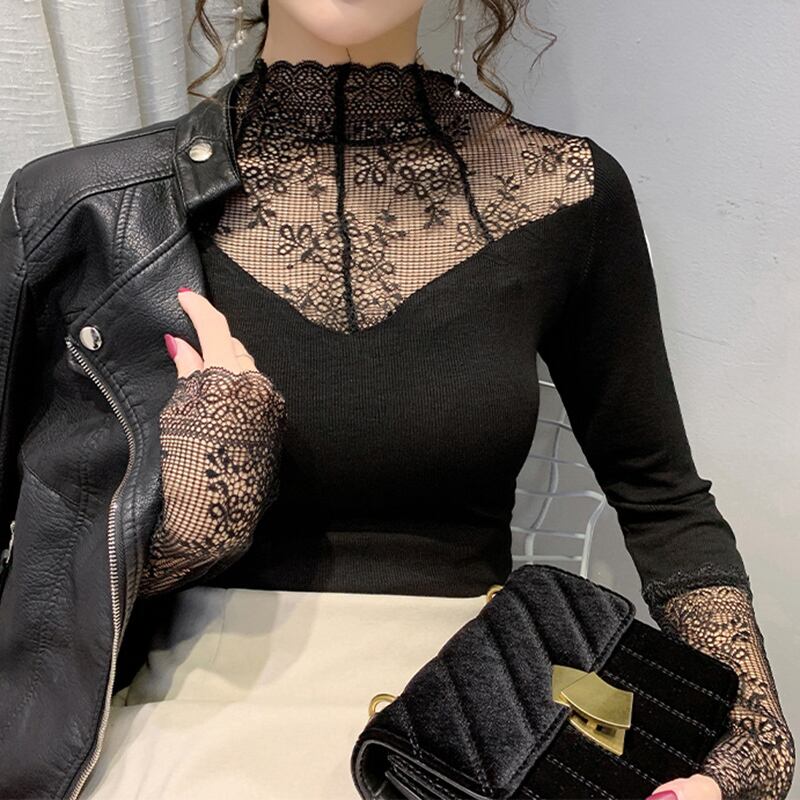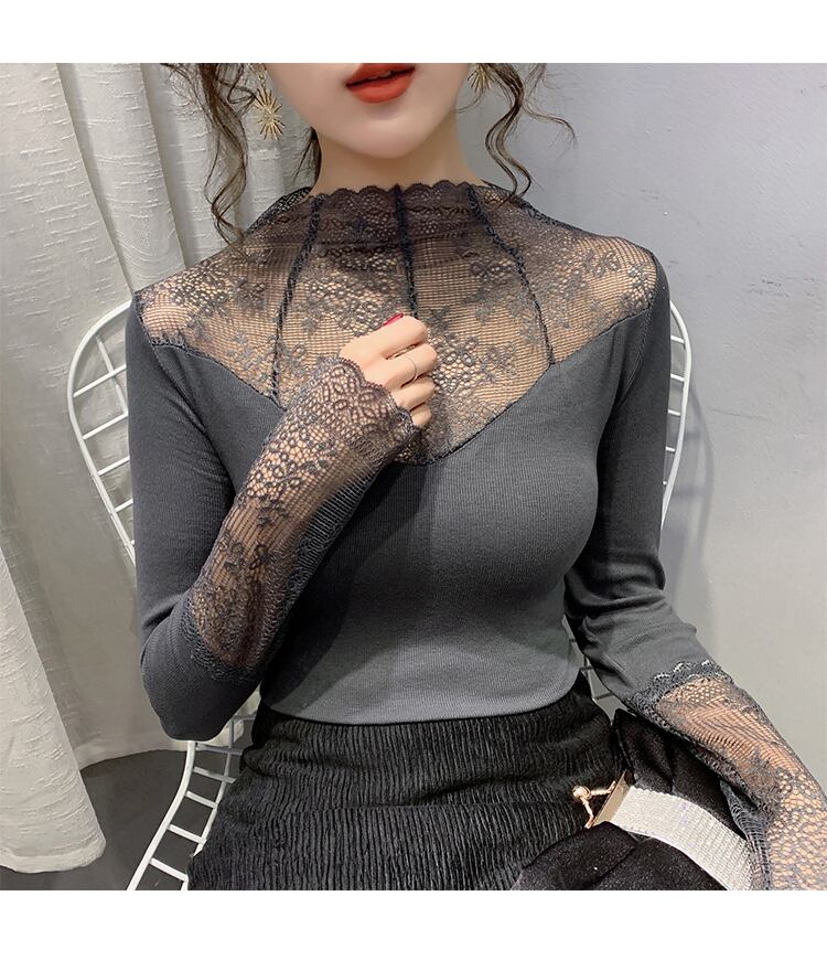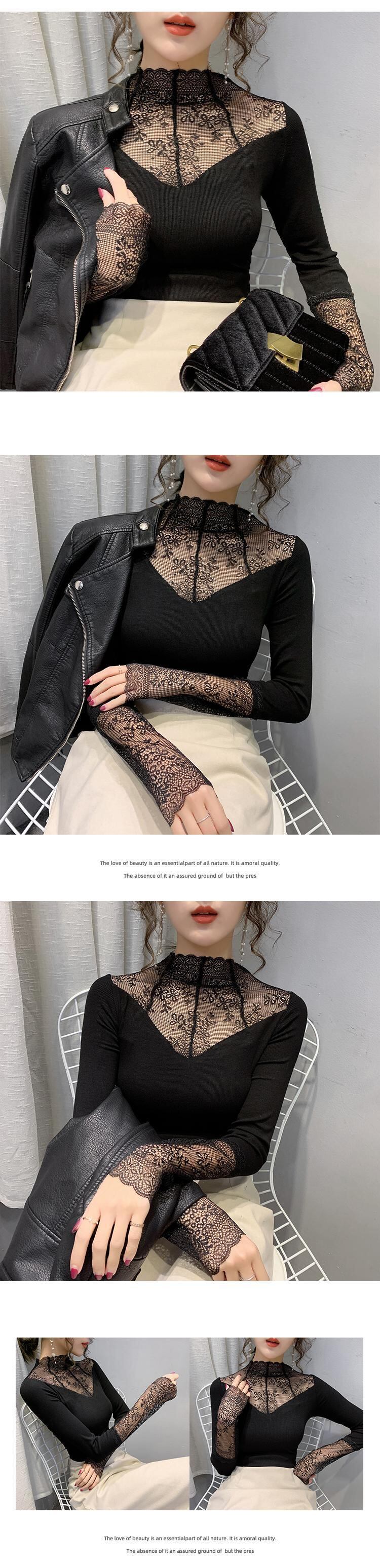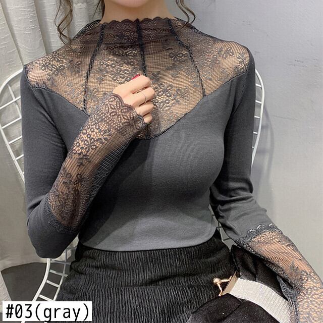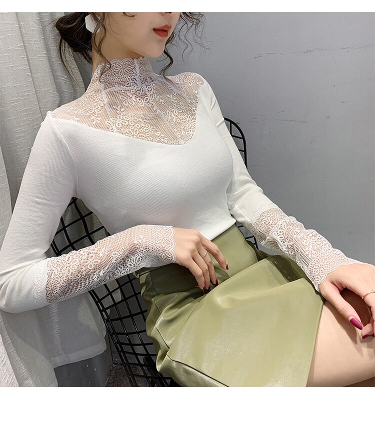 セクシーなガーゼパッチワークトップハーフタートルネック底入れ Tシャツ女性長袖トップス春秋 2022 レディース ロング スプリング 春物 オータム 秋物 Son84606761903