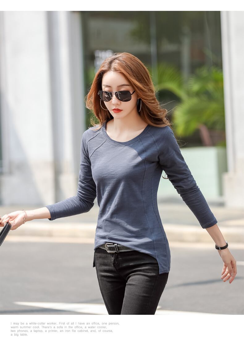LJSXLS ソリッドベーシックコットンロングスリーブ Tシャツ女性 2021 秋ゆるいスリット Tシャツスタイルトップス Tシャツ 長袖 オータム 秋物 ソリッドカラー Son23168962239
