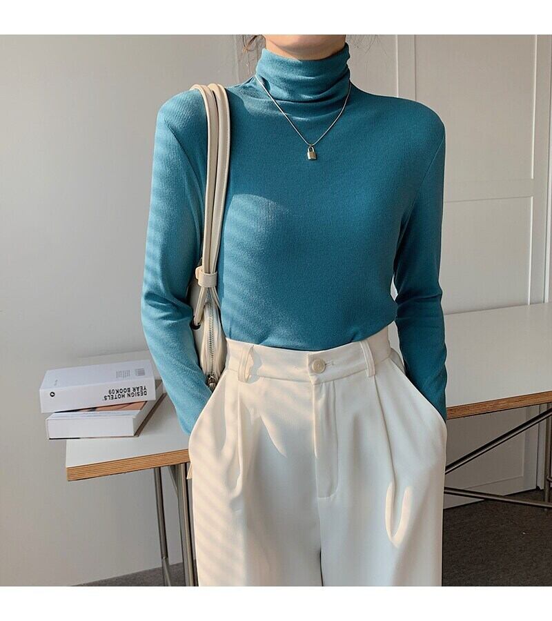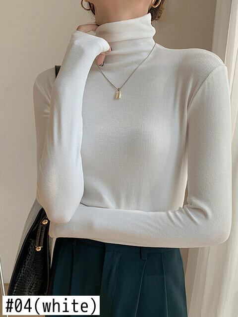 春秋のコットントップス女性長袖タートルネックスリム Tシャツソリッドベーシック Tシャツ ロング スプリング 春物 オータム 秋物 ソリッドカラー Son93196001229