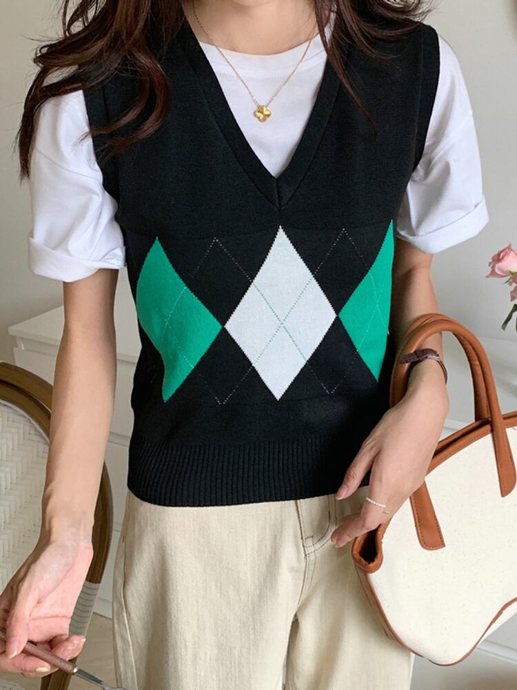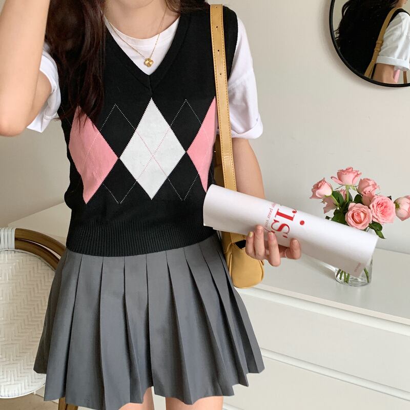 2022 チェック柄セーターベスト女性 V ネックノースリーブタンクスタイルニットプルオーバートップス毎日秋冬 オータム 秋物 ウィンター 冬物 Vネック Son27254995248