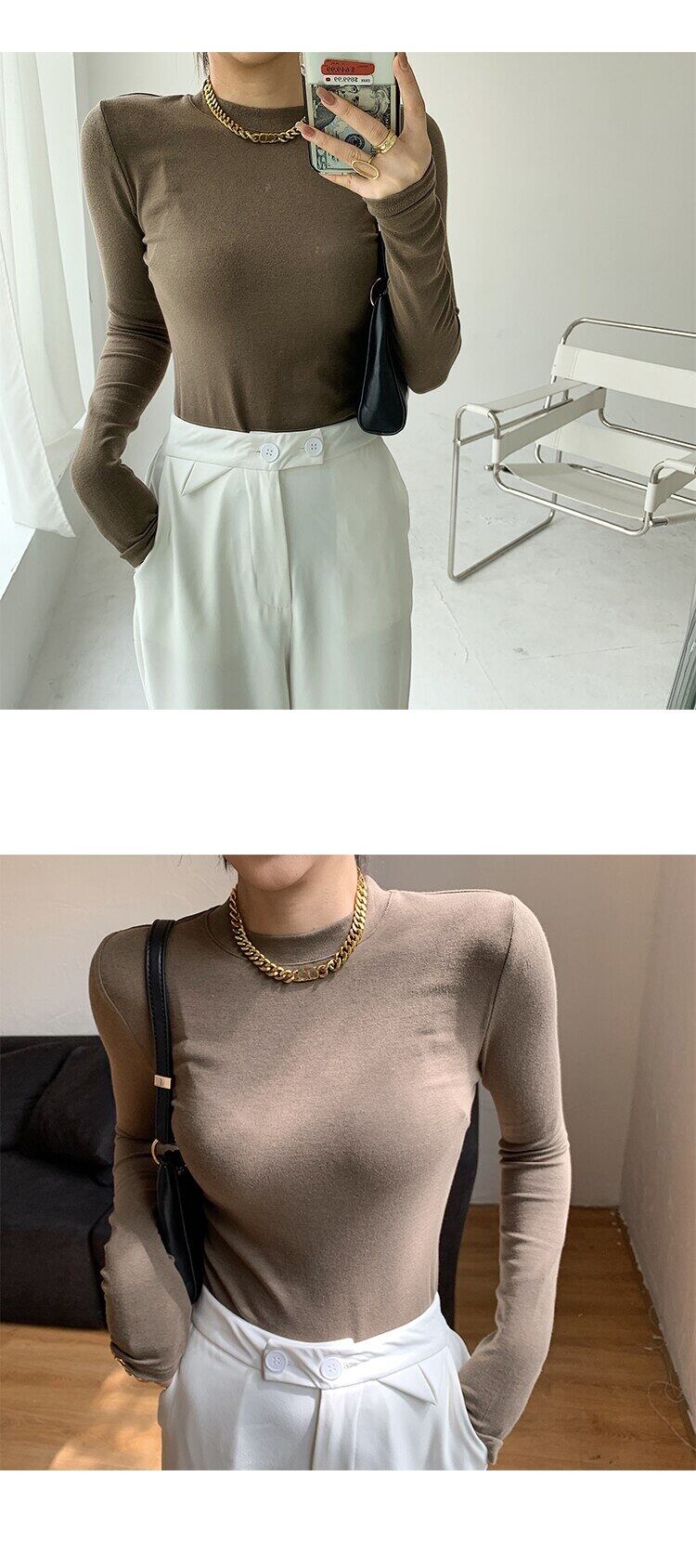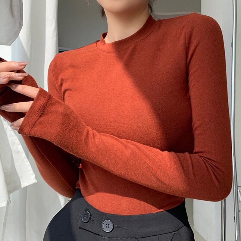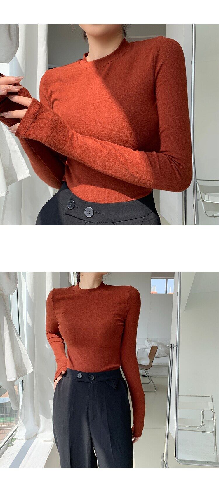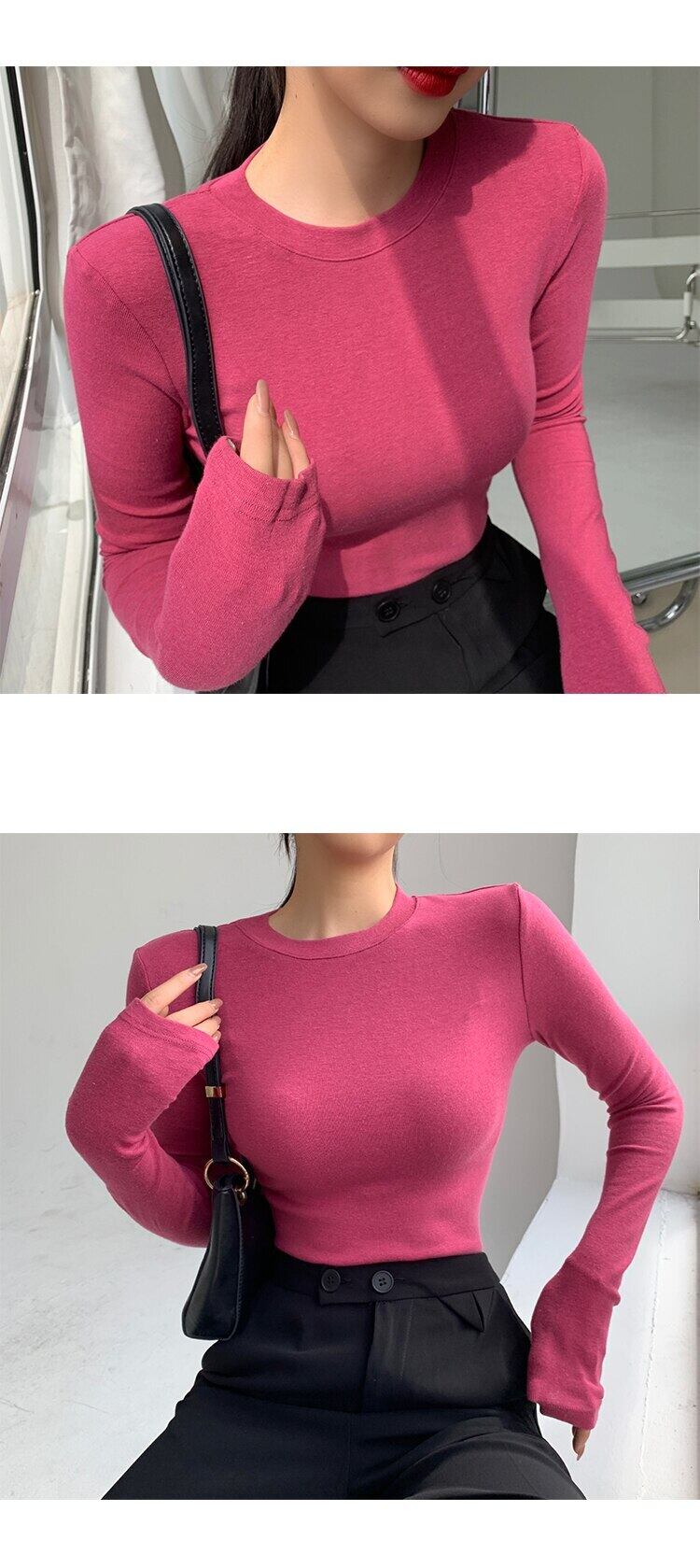 春 O ネック長袖 Tシャツ女性のセクシーなトップス秋黒スキニースリムベーシック女性 Tシャツ白 Tシャツ ロング ホワイト ブラック スプリング 春物 オータム 秋物 Oネック Son67485214130