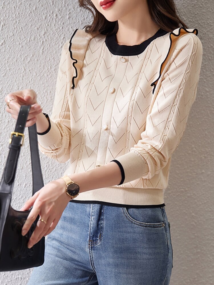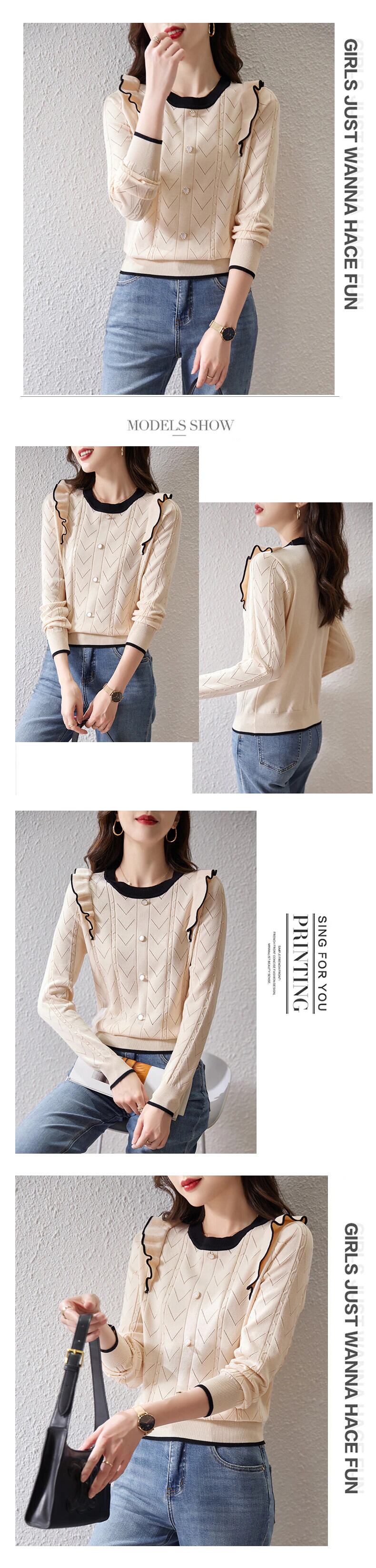 2022 秋冬フリルセーター女性中空アウトスリムニット長袖トッププルオーバーセーター黒服 ロング ブラック ラッフル オータム 秋物 ウィンター 冬物 Son28490138696