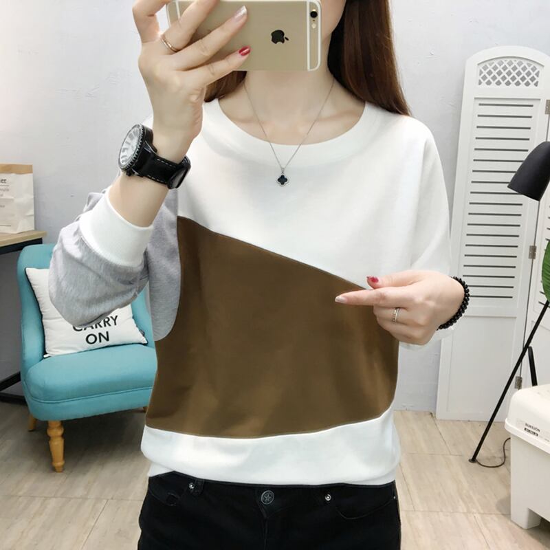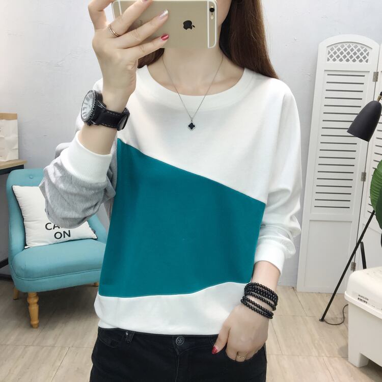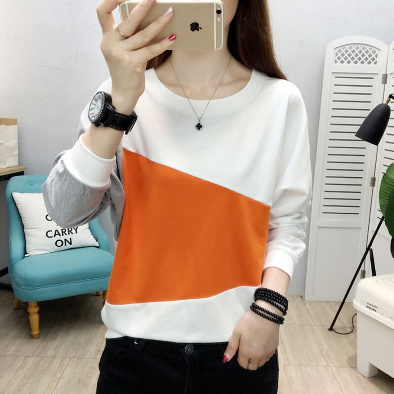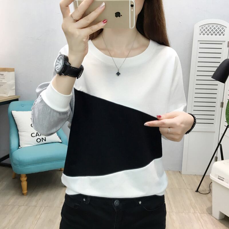 LJSXLS パッチワークルーズ Tシャツ女性秋冬 O ネック長袖 Tシャツコットントップス女性 ロング オータム 秋物 ウィンター 冬物 Oネック Son58851932048