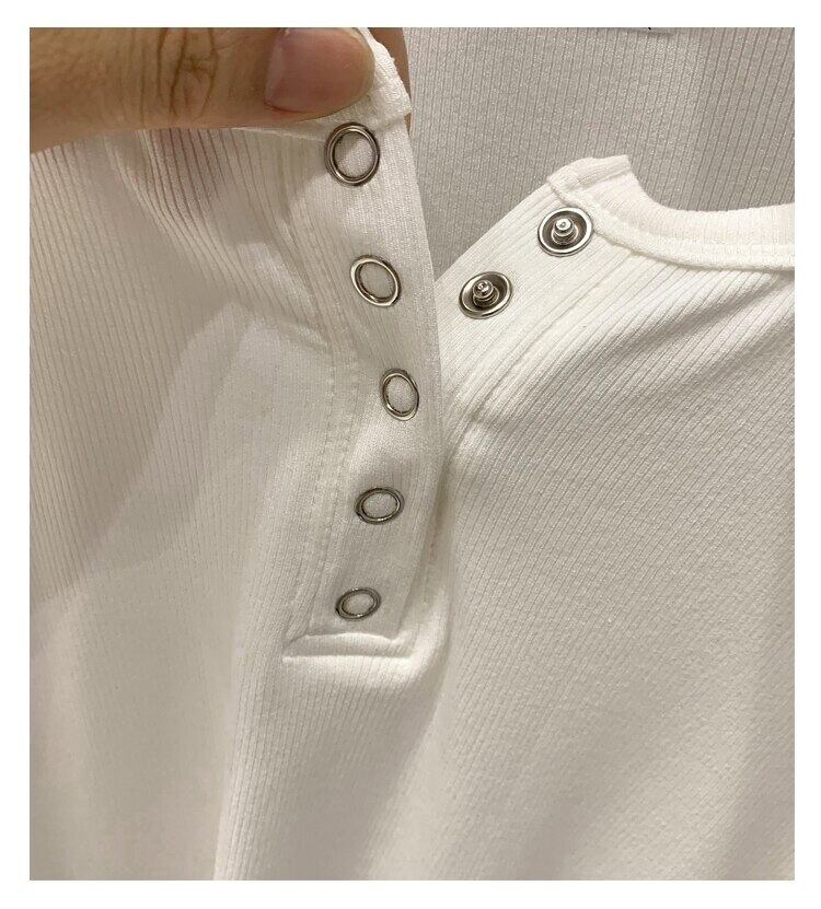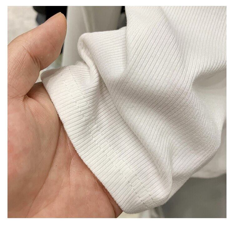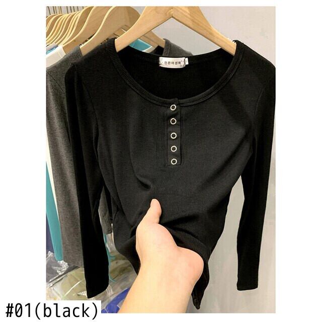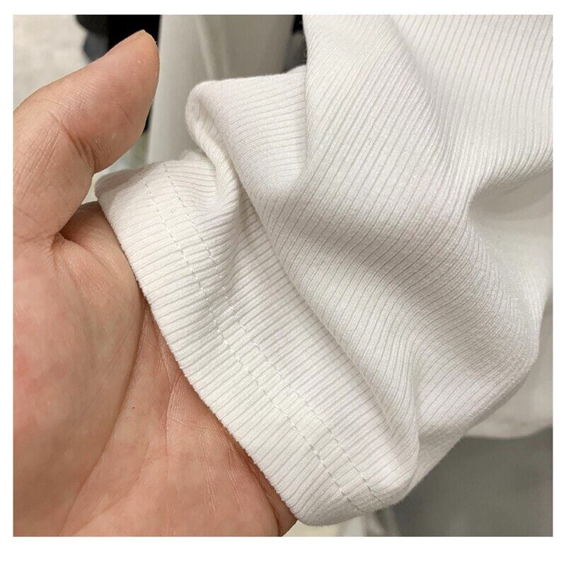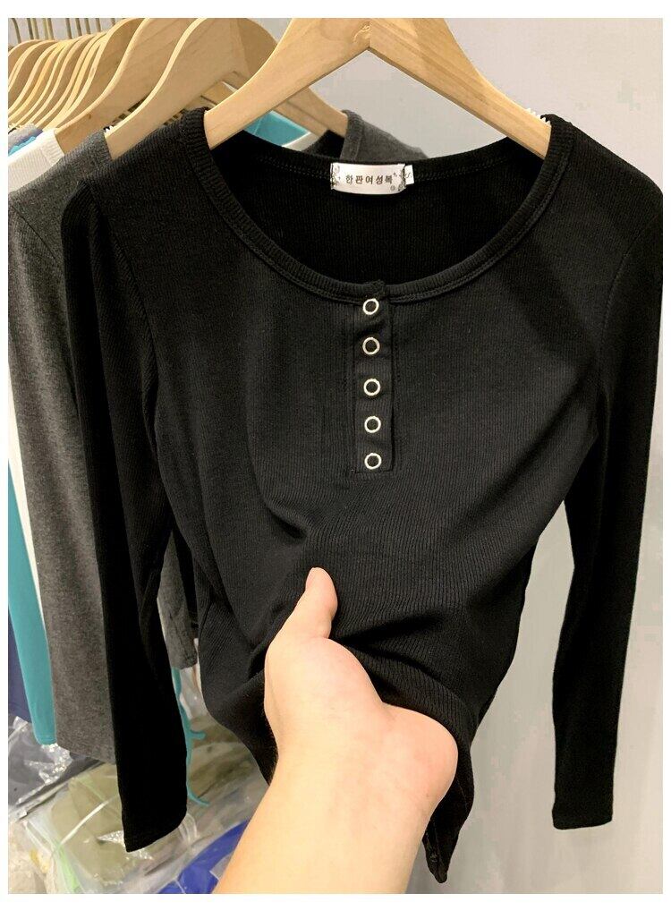 グレーブラックホワイト O ネックコットン Tシャツ女性春リブ Tシャツ長袖スリム Tシャツ 2022 秋レディース ロング スプリング 春物 Oネック Son82547088762