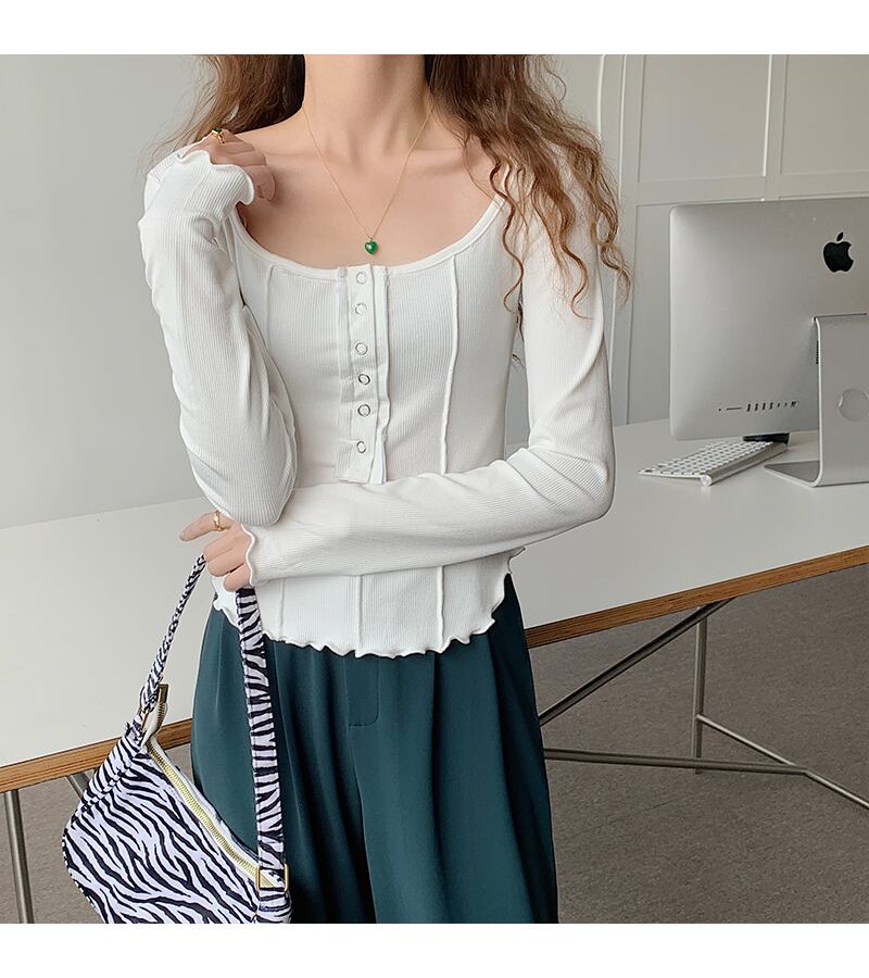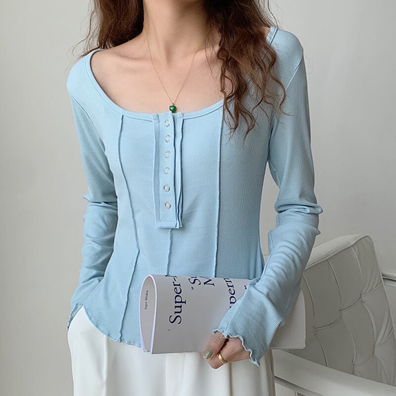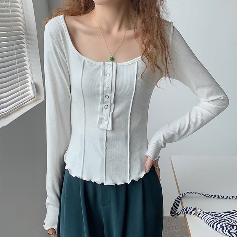 スクエアカラー長袖 Tシャツ 2022 春薄型女性 Tシャツスリムコットン Tシャツ服レディーストップス Tシャツファム ロング スプリング 春物 スクウェア Son17878457921
