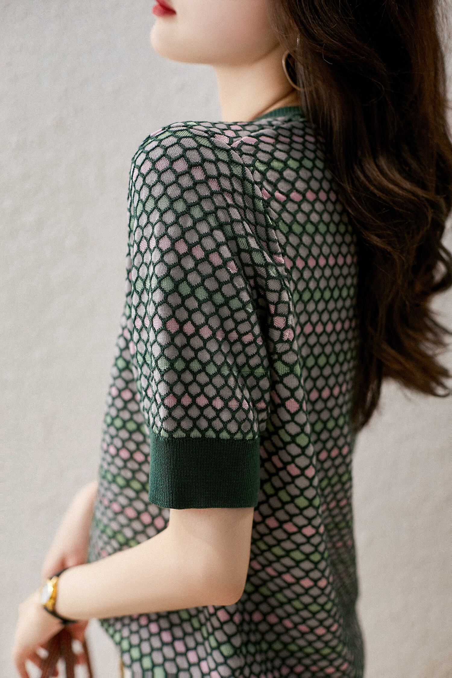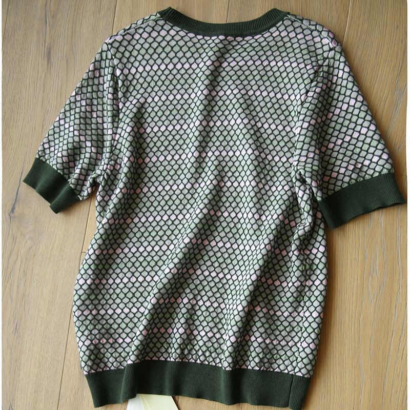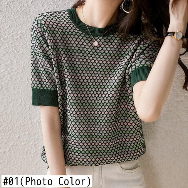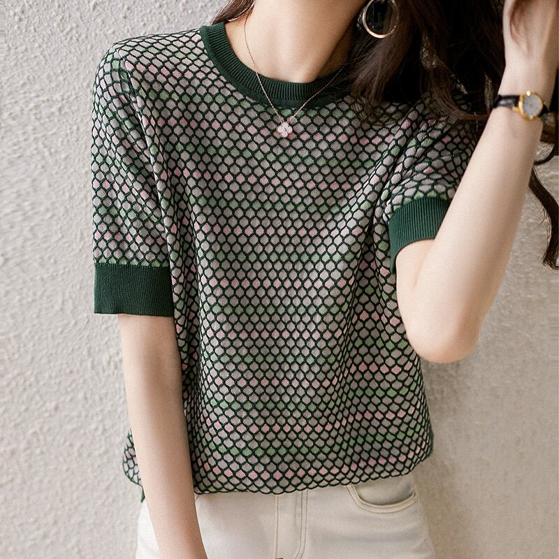 LJSXLS チェック柄 O ネック Tシャツ夏の女性 Tシャツ半袖 Tシャツ女性ニットトップス女性 2022 Poleras ショート ハーフスリーブ サマー 夏物 Oネック Son33672997781