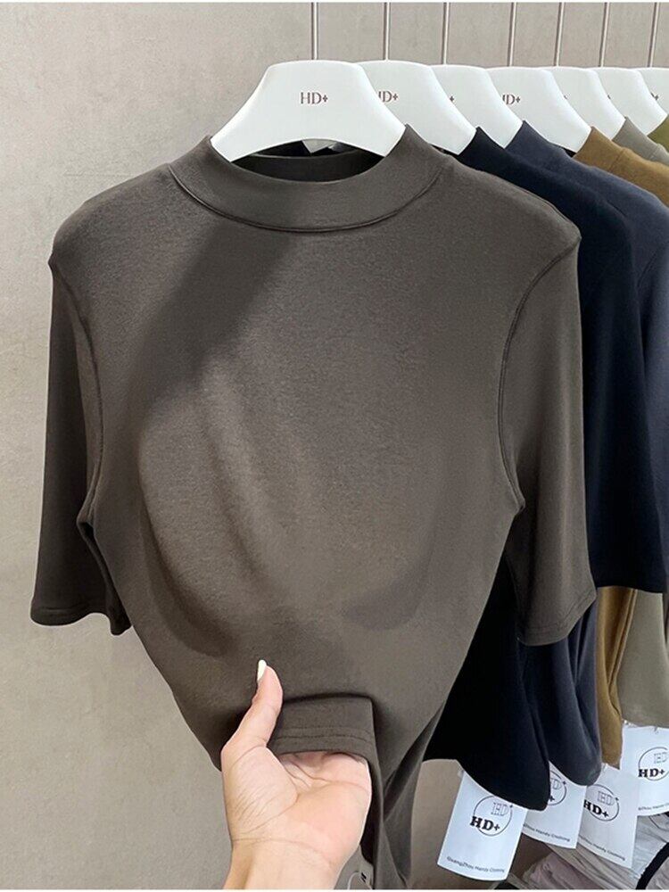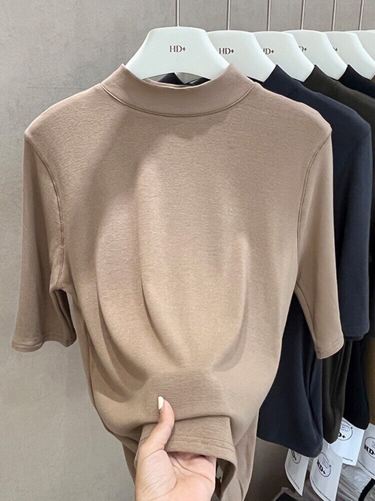 ベーシックハーフ半袖 Tシャツ女性春秋トップ O ネック Tシャツレディース Tシャツ 15 色 ショート ハーフスリーブ スプリング 春物 オータム 秋物 Oネック Son16493218976