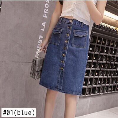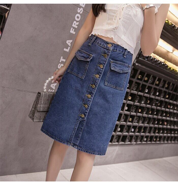 LJSXLS 2022 夏スタイルブルー膝丈ペンシルスカート女性ボタンウエストデニムスカート S-5XL サマー 夏物 Son73736711069
