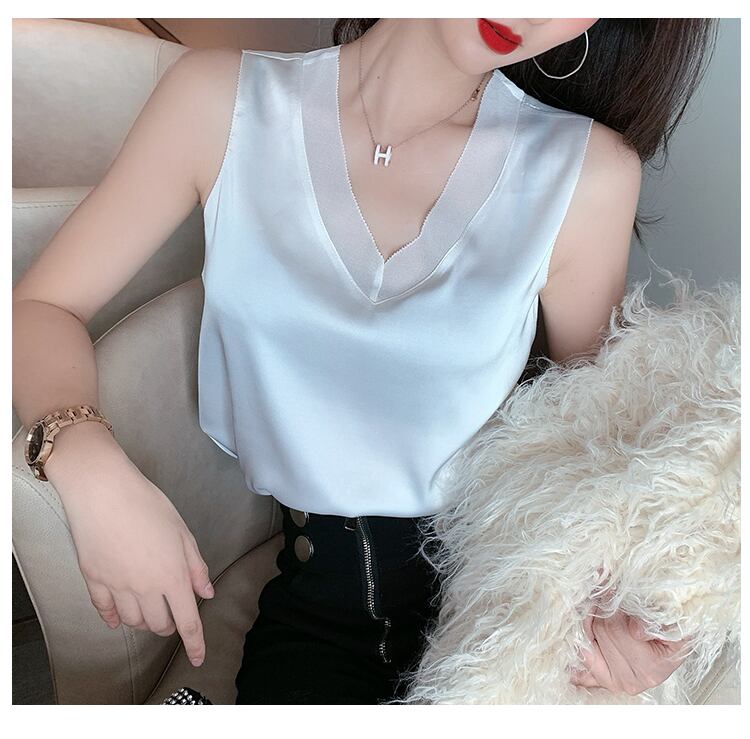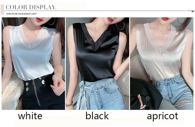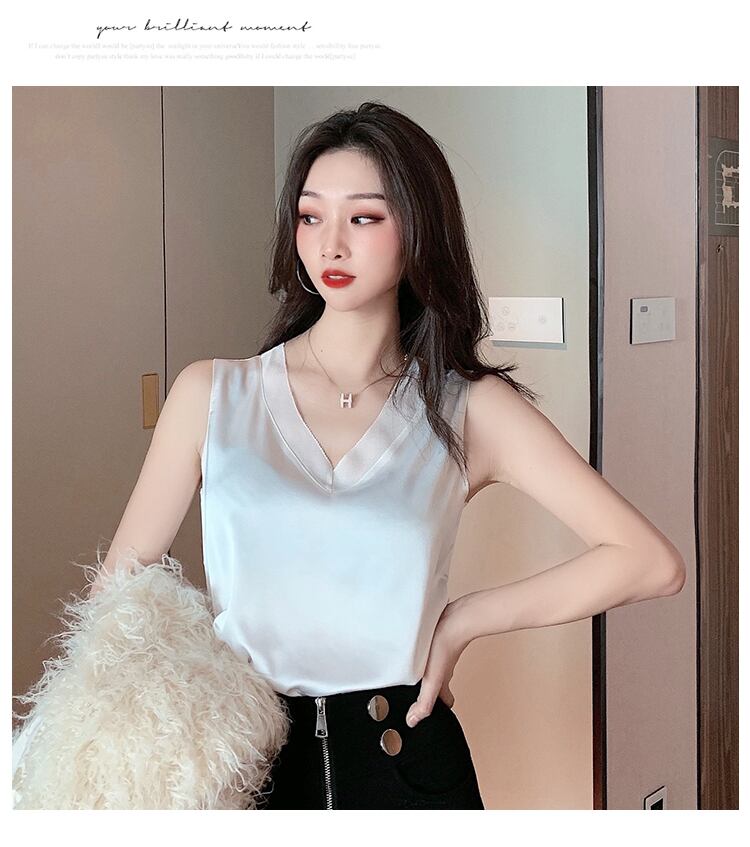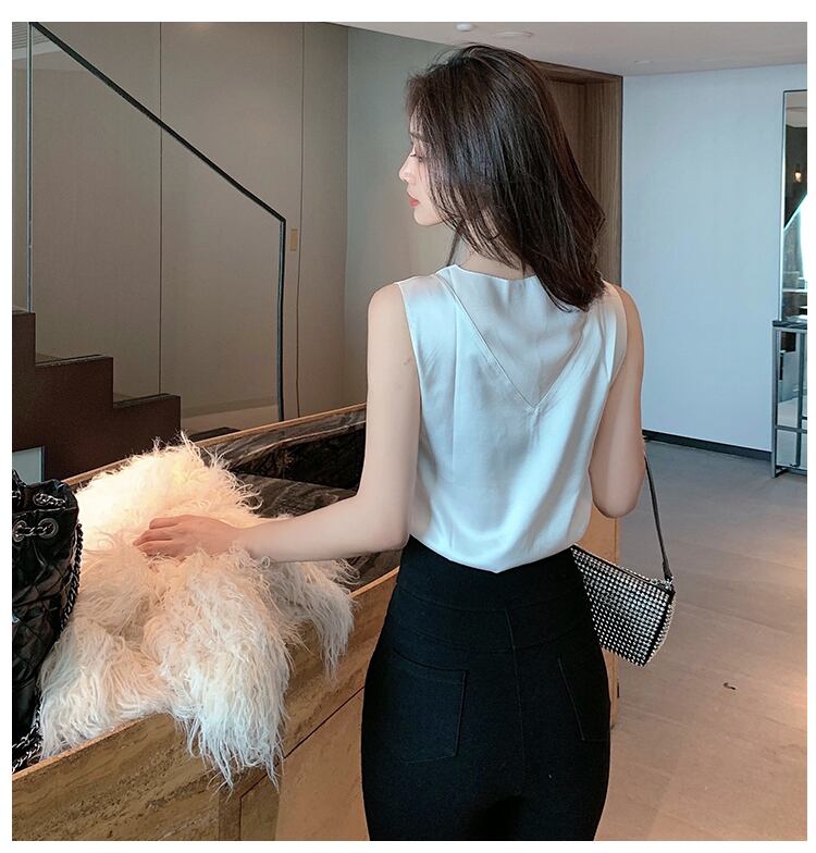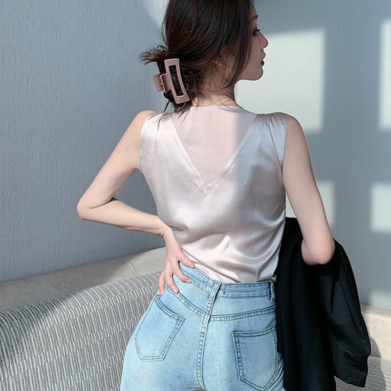 LJSXLS V ネックシルクタンクトップ女性服 2022 夏ノースリーブトップスベーシックルースキャミソール黒タンク Haut ブラック サマー 夏物 Vネック Son9560717178