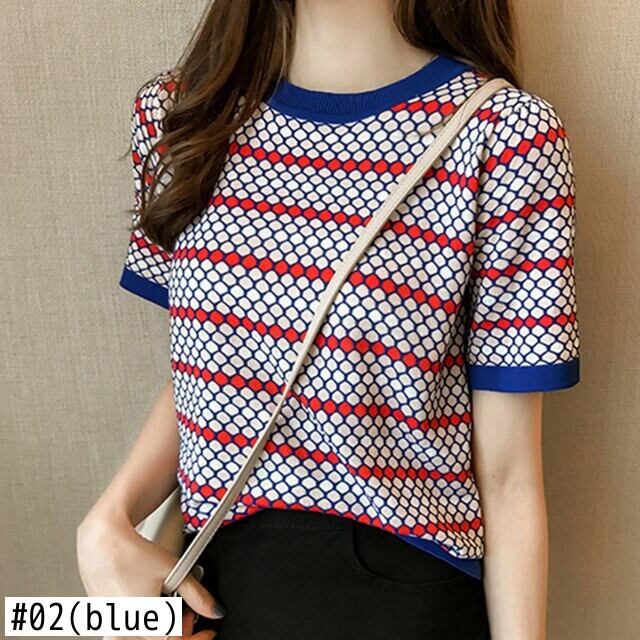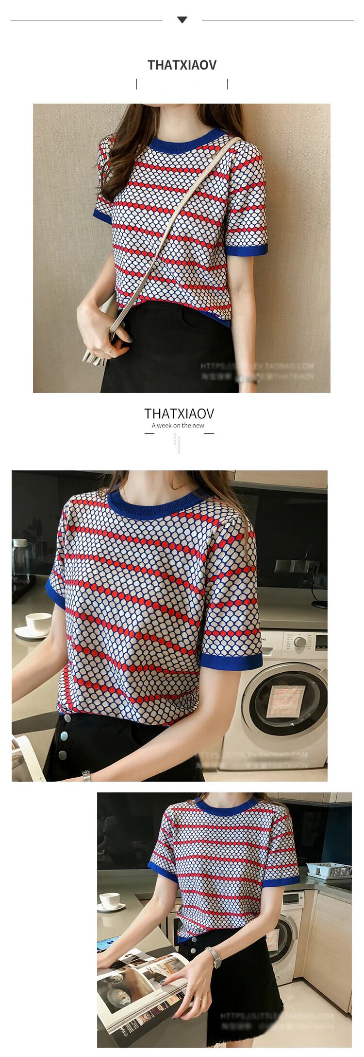 LJSXLS 夏アイスシルク半袖 Tシャツ女性 2021 レディース Tシャツファムニット Tシャツポルカドットトップス ショート ハーフスリーブ サマー 夏物 Son88261874686