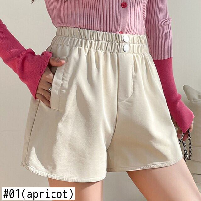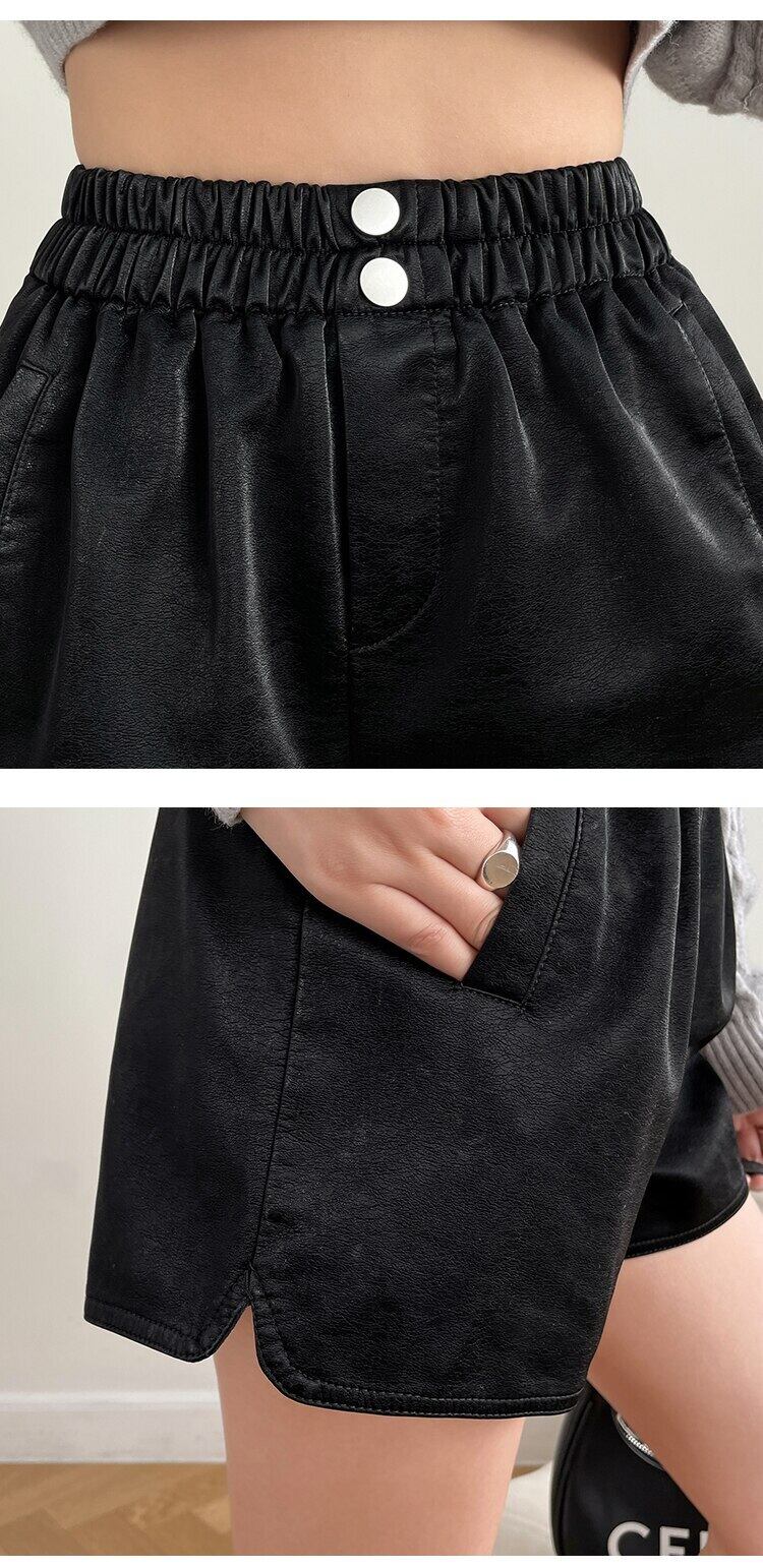 LJSXLS 秋弾性ウエスト Pu レザーショーツ女性ポケットワイドレッグソリッドベーシックショーツルーズ 2021 冬 エラスティック 伸縮 オータム 秋物 ウィンター 冬物 ブルマー ワイドパンツ ソリッドカラー Son45367623273