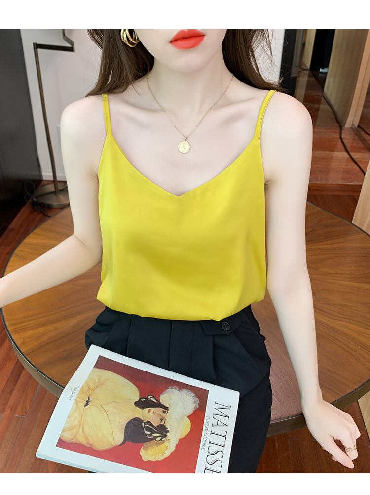 LJSXLS 夏トップ女性 V ネックタンクトップ女性のセクシーなノースリーブ黒 Tシャツキャミ女性の基本的なトップス白黄色 ホワイト ブラック サマー 夏物 Vネック Son36381715418