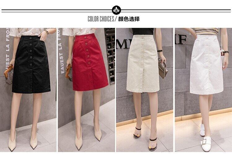 LJSXLS 段 Faldas Moda 2022 夏膝丈ペンシルスカート女性ボタンウエストブラックホワイトスプリットオフィススリムスカート サマー 夏物 会社 学校 通勤や通学にも Son6125659973
