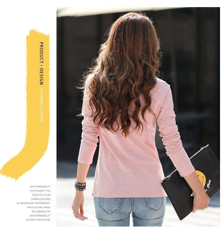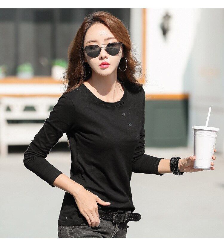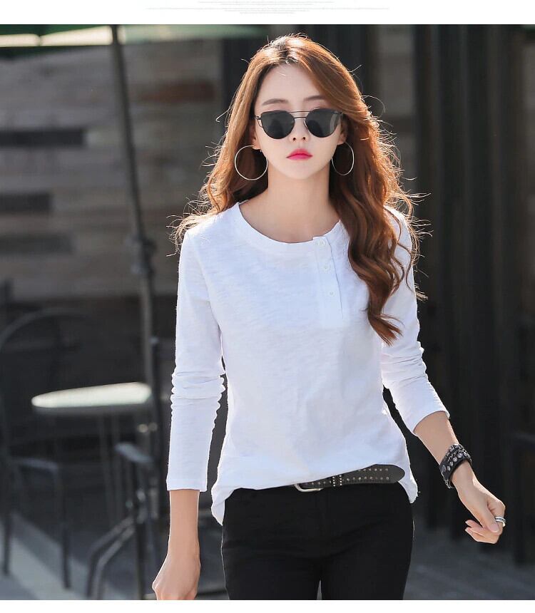 LJSXLS 2022 春ソリッドルーズ Tシャツ女性ボタン O ネック Tシャツ服秋長袖トップ Camisetas ロング スプリング 春物 オータム 秋物 Oネック ソリッドカラー Son72739453989