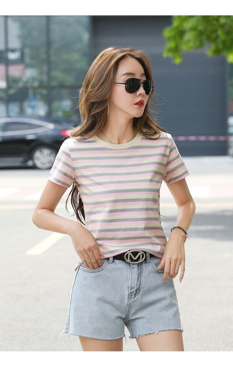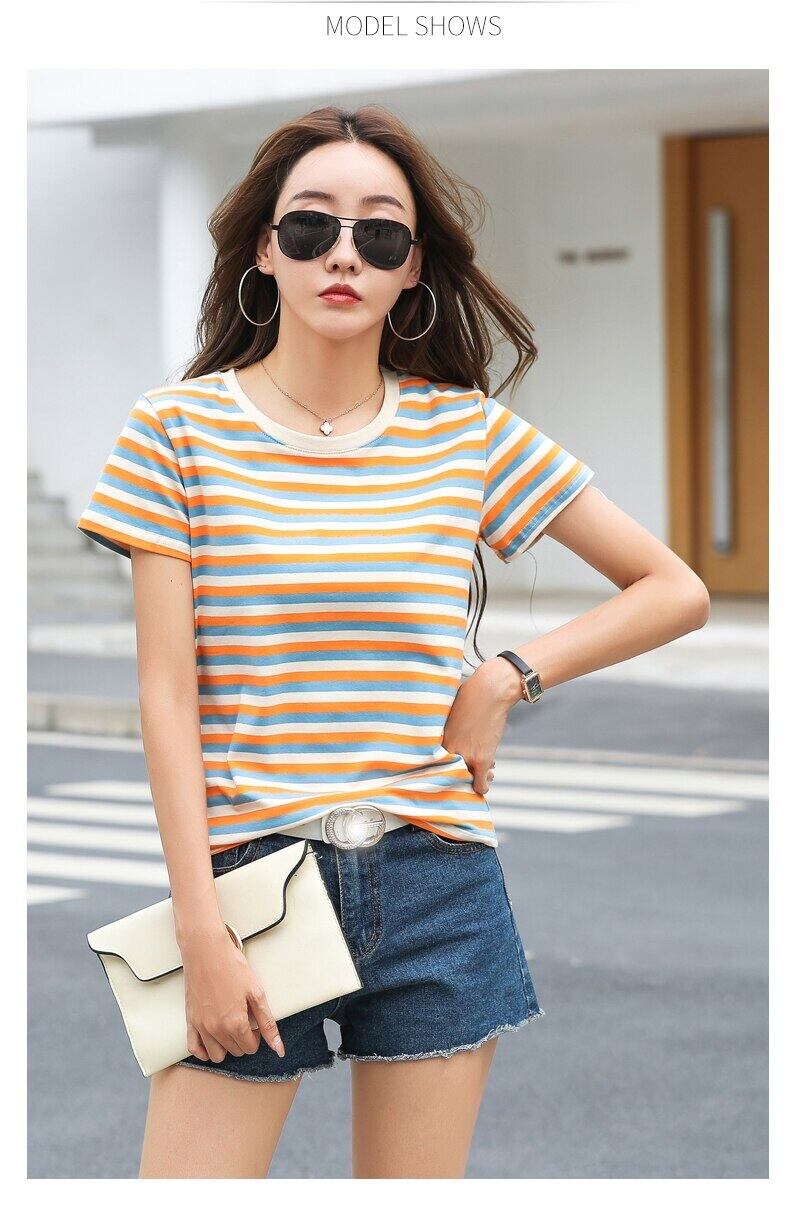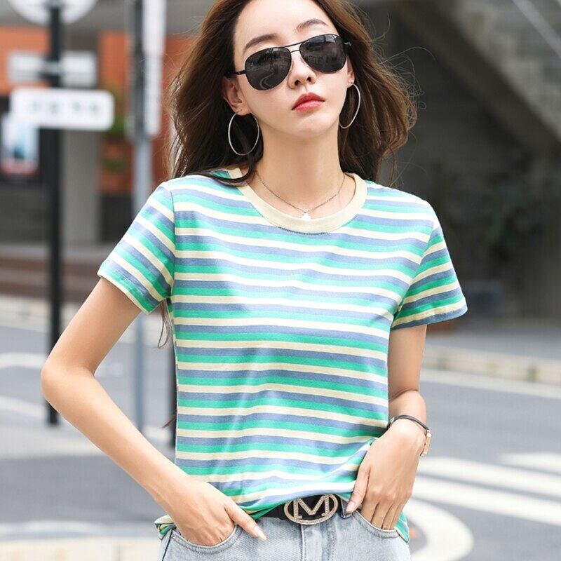 トップス女性 2022 ストライプ Tシャツスタイルの女性の服の綿 Tシャツ女性半袖 Tシャツ夏 Camisetas デ ショート コットン ハーフスリーブ サマー 夏物 Son59122626467