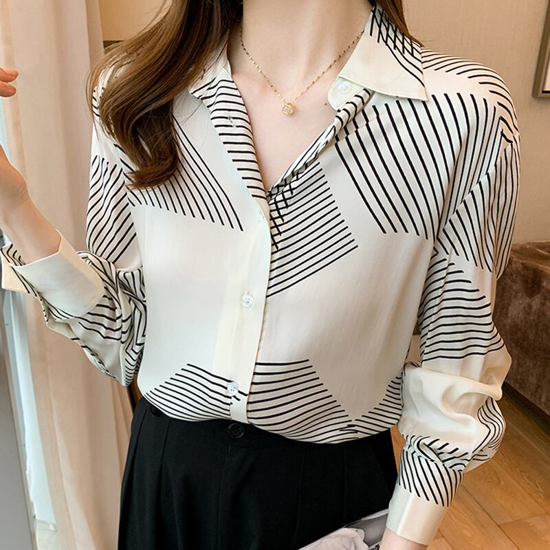LJSXLS 秋のオフィスレディシフォンストライプスリムシャツ長袖女性ブラウストップス Y 2021 レディース ロング オータム 秋物 会社 学校 通勤や通学にも Son34399957315