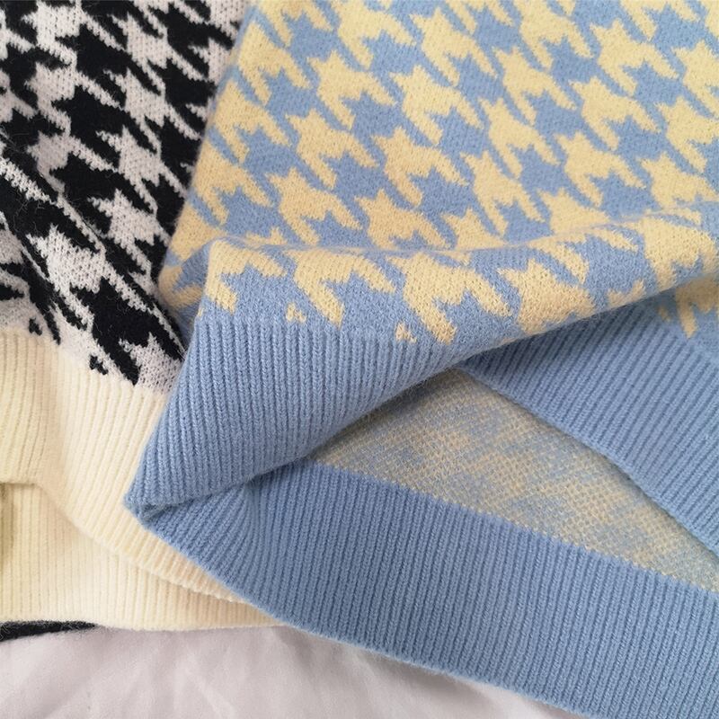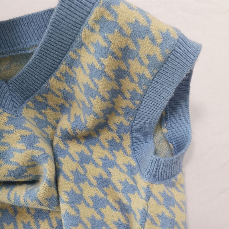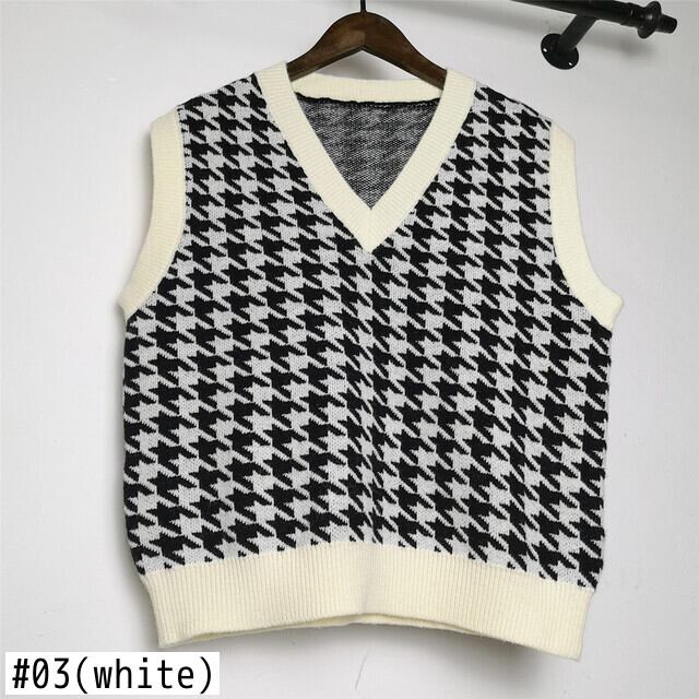 LJSXLS V ネック千鳥格子ノースリーブ女性セーターベスト 2021 春秋のスタイルルーズプルオーバーニット服 スプリング 春物 オータム 秋物 Vネック Son19888150911