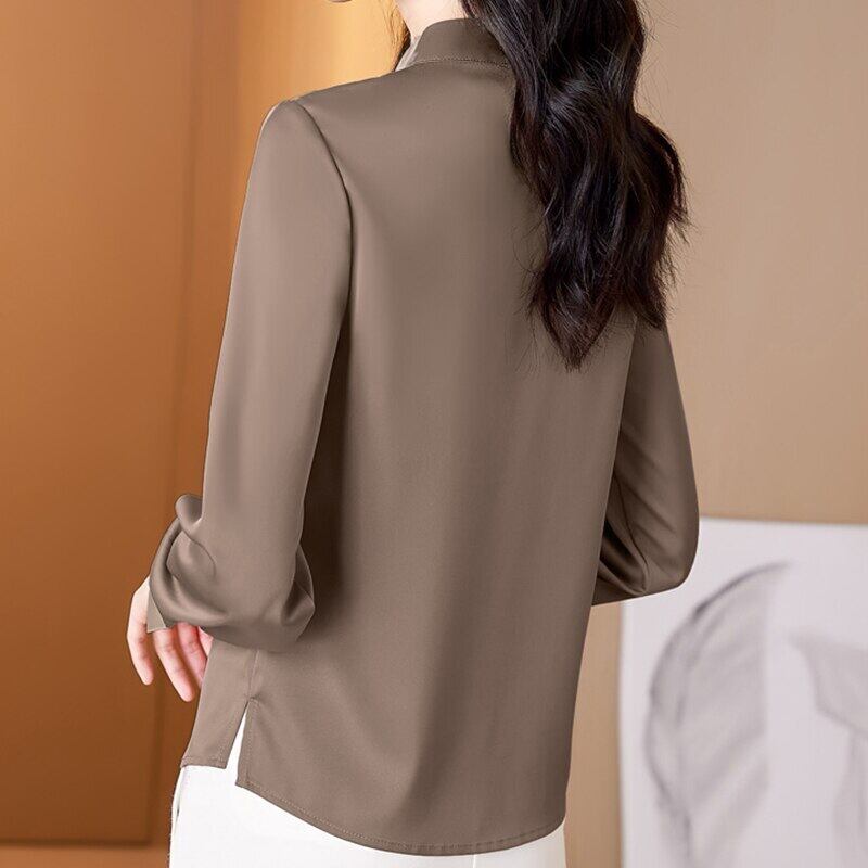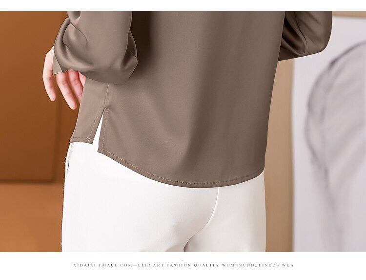 レースアップスタンドカラー女性ブラウス長袖トップ 2022 春の女性の服固体シフォンブラウス ロング スプリング 春物 ソリッドカラー Son61856718079
