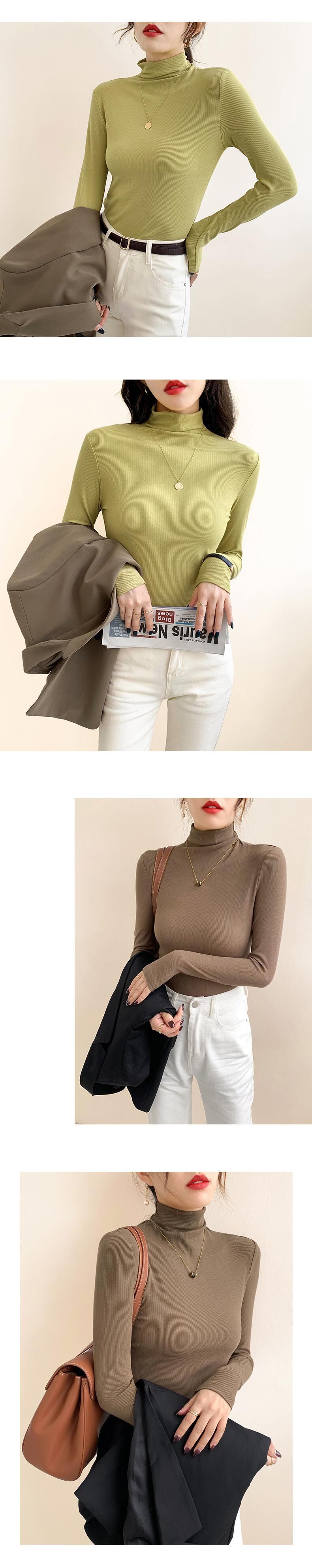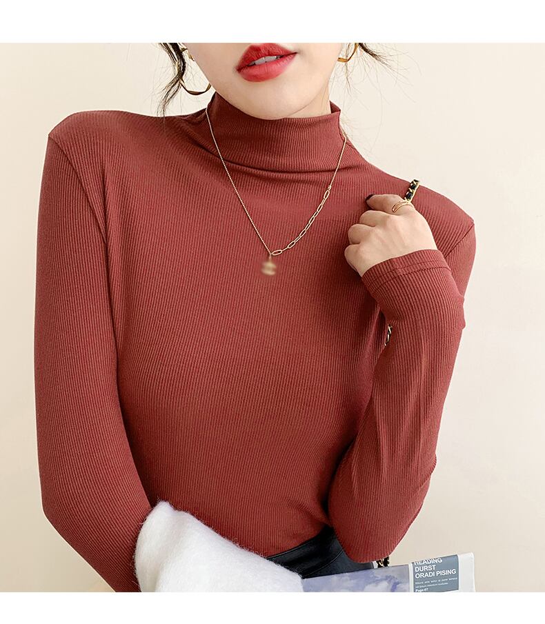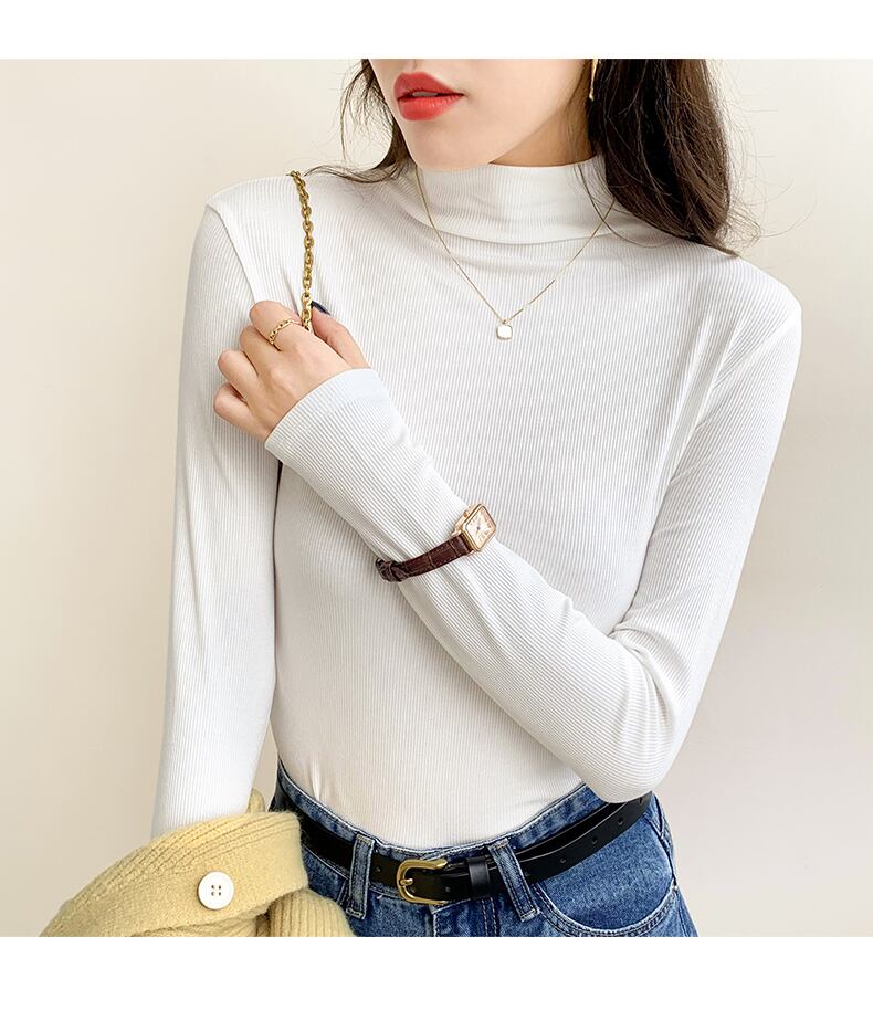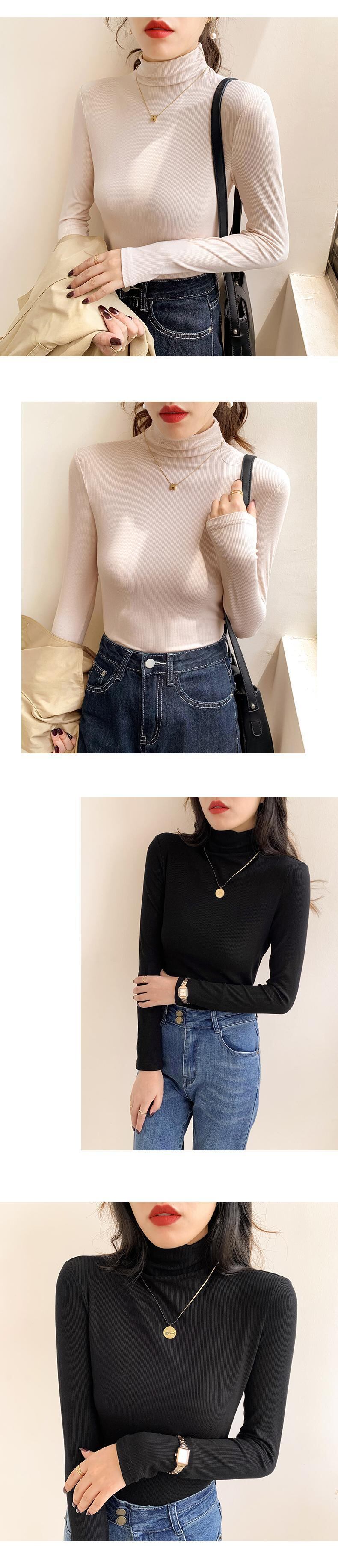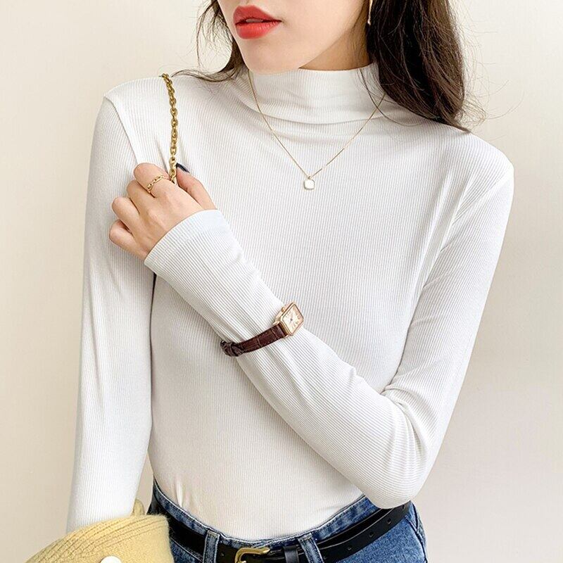 基本的なソリッドハーフカラー Tシャツ女性長袖スタイルトップススリム黒 Tシャツ秋冬 Tシャツ ロング ブラック オータム 秋物 ウィンター 冬物 ソリッドカラー Son70681858161