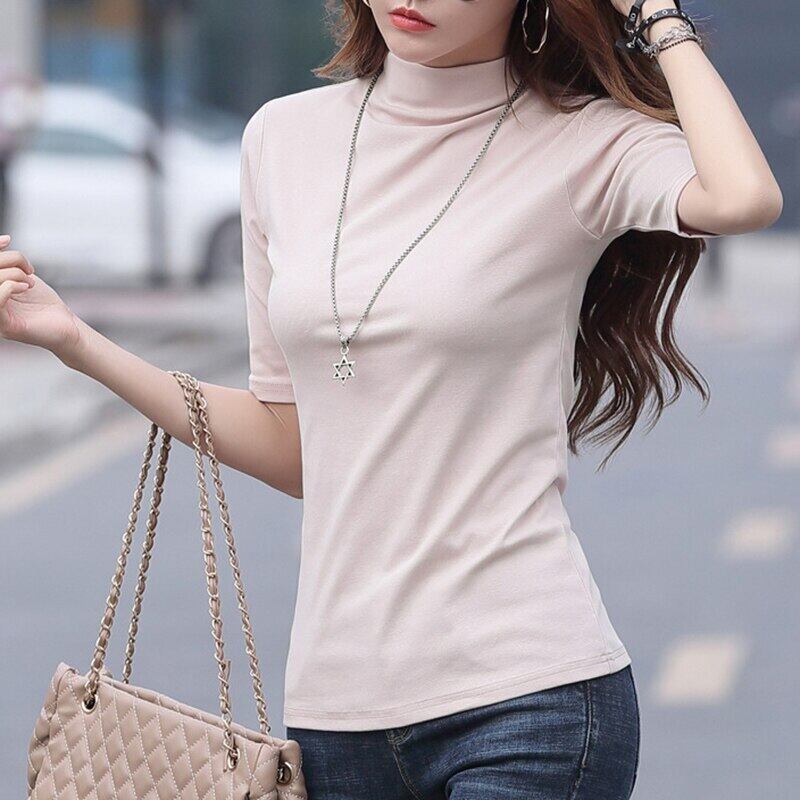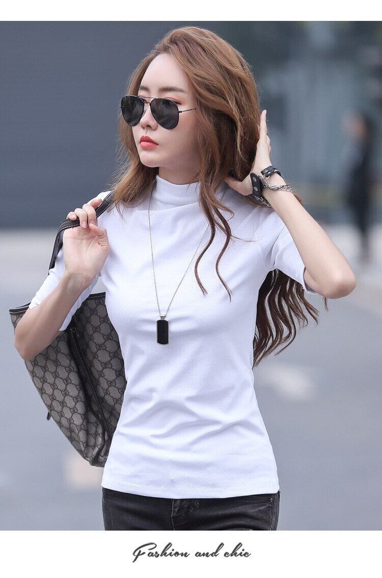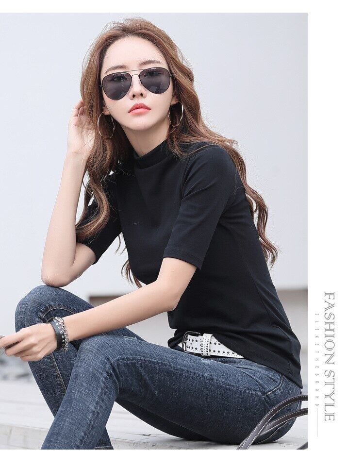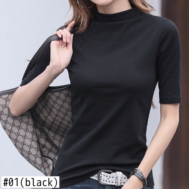 LJSXLS ベーシックハーフカラーコットンTシャツ女性ブラックホワイトTシャツ服スリムTシャツ秋 オータム 秋物 Son30257704598