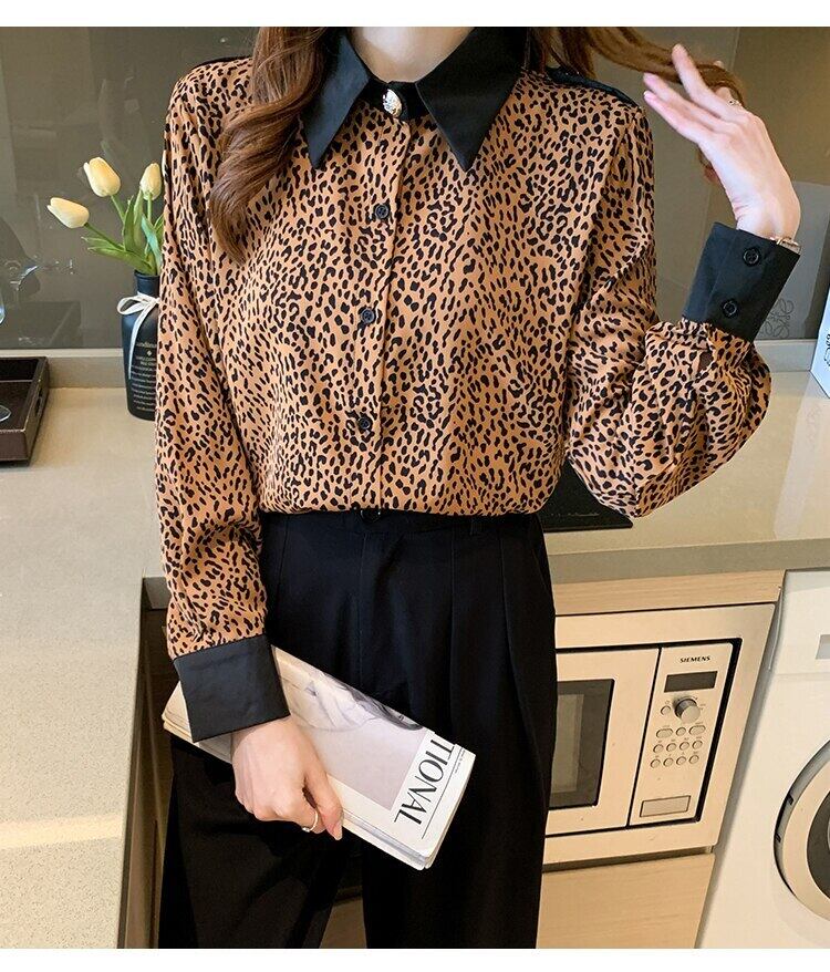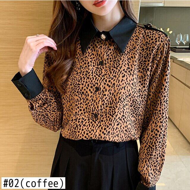 ヒョウブラウス女性春秋ルーズシフォントップス長袖シャツ Y ロング スプリング 春物 オータム 秋物 Son38460805967