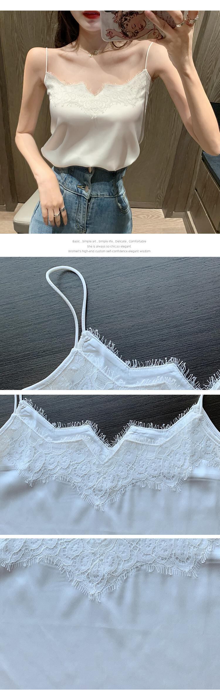 キャミソール女性 2022 夏ホワイトレースストラップシルクトップ黒のセクシーなホルター V ネックサテンタンクトップ下着 ブラック サマー 夏物 Vネック Son19677990619