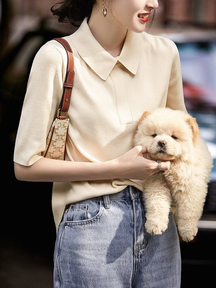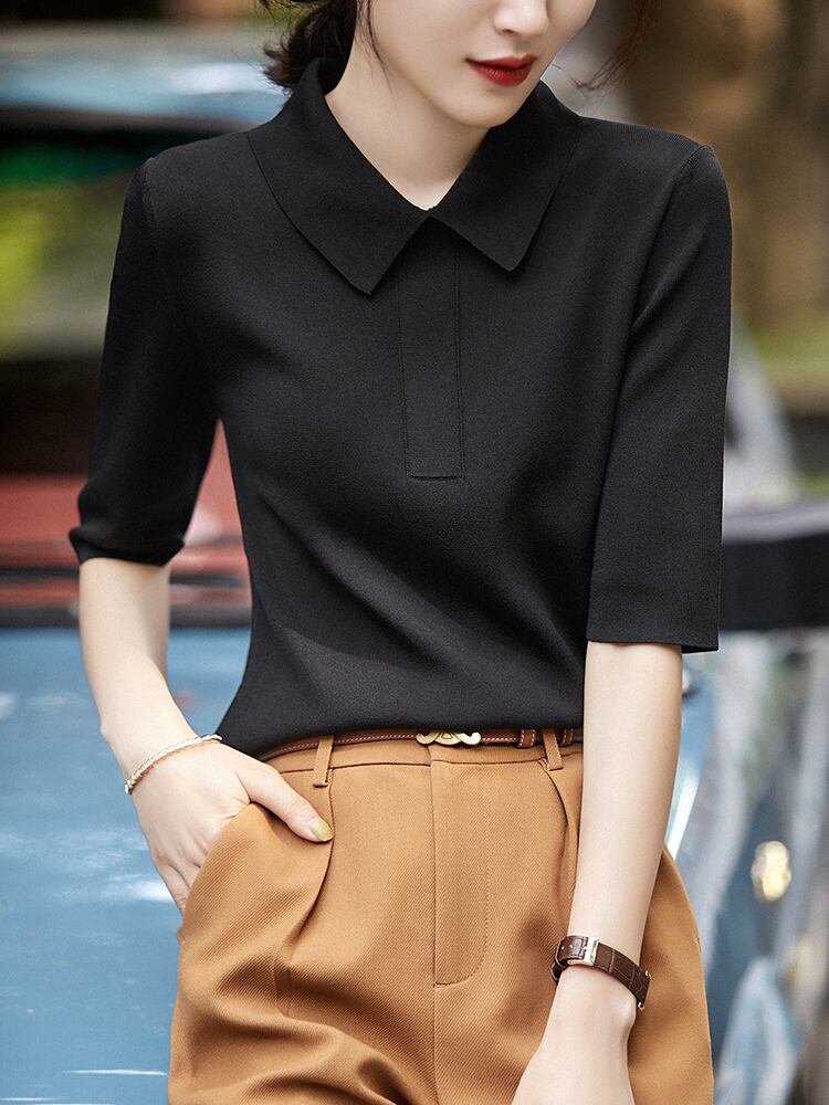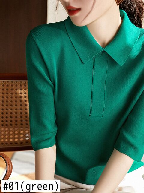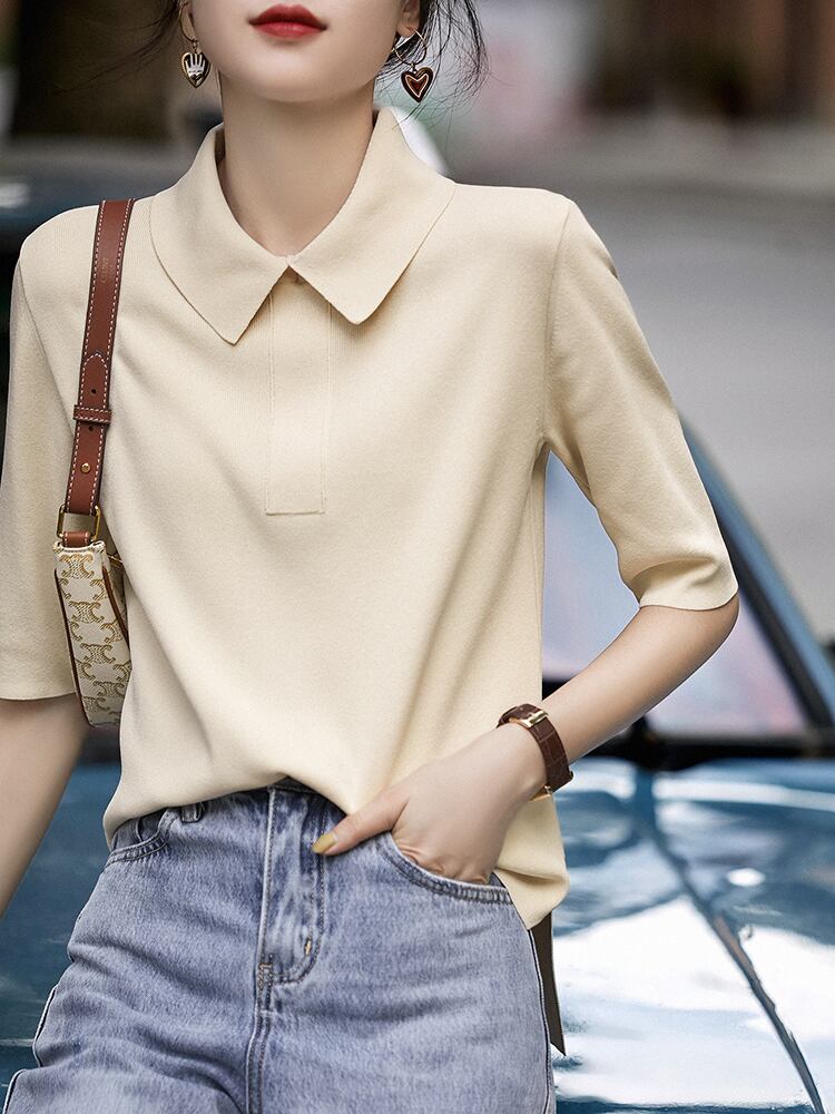 夏ジャンパーセーター女性ターンダウン襟ニットトップ固体半袖プルオーバー女性セーター 2022 服 ショート ハーフスリーブ サマー 夏物 ソリッドカラー Son82473581395