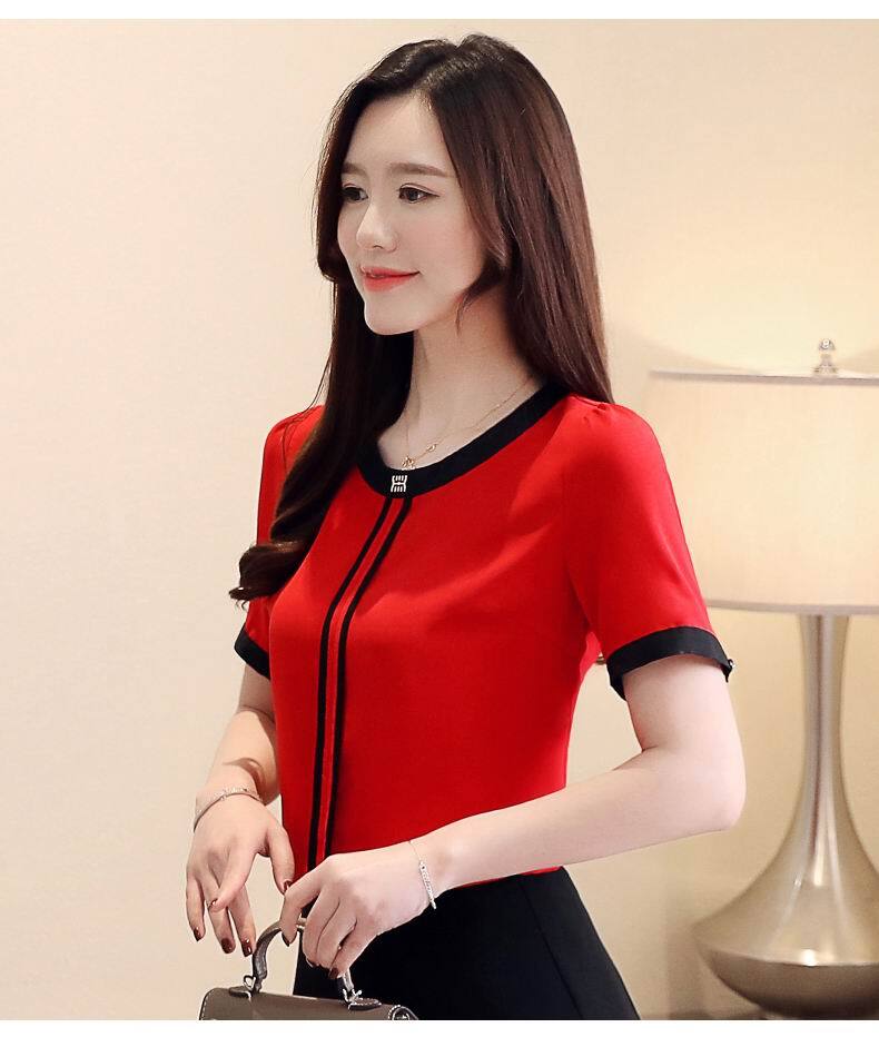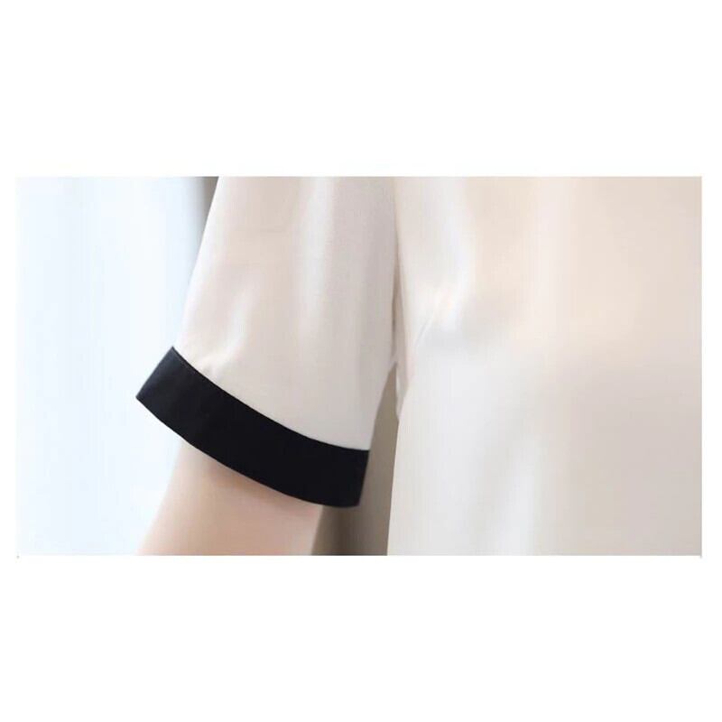 LJSXLS デモーダ 2022 夏シフォンブラウス女性ホワイトオフィスシャツ半袖女性服ブラウス ショート ハーフスリーブ サマー 夏物 会社 学校 通勤や通学にも Son2438038388